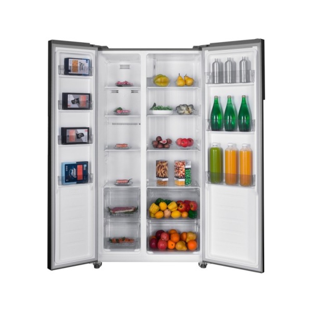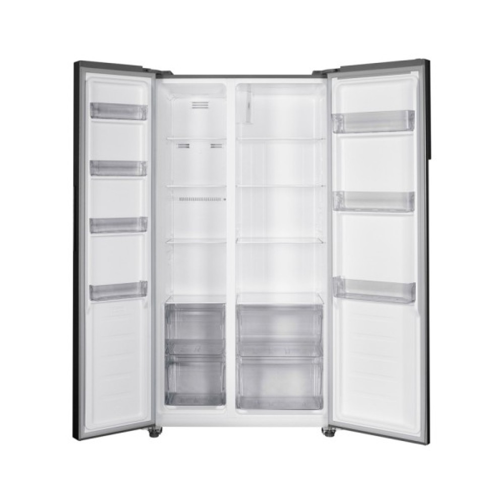 Багатофункціональність пристрою підкреслюється вісьмома скляними полицями у холодильнику та чотирма секціями у морозильнику, що забезпечують велику місткість і організованість простору. Спеціальний ящик для овочів, полиця для пляшок і форма для льоду дозволяють зручно розміщувати всі продукти, не жертвуючи зручністю. Загальний обсяг холодильника становить 436 літрів, що ідеально для повсякденного використання.