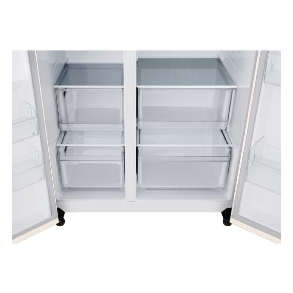 Холодильник LG GC-B257KEHW — це втілення сучасних технологій та елегантного дизайну в одному пристрої. Його side-by-side концепція з двома камерами забезпечує не лише стильний вигляд, а й надзвичайну функціональність та місткість, адже загальний об'єм усіх відділень складає вражаючі 703 літри. Це дозволяє без зусиль розмістити велику кількість продуктів, що особливо актуально для великих родин чи любителів приготування їжі з запасом.
