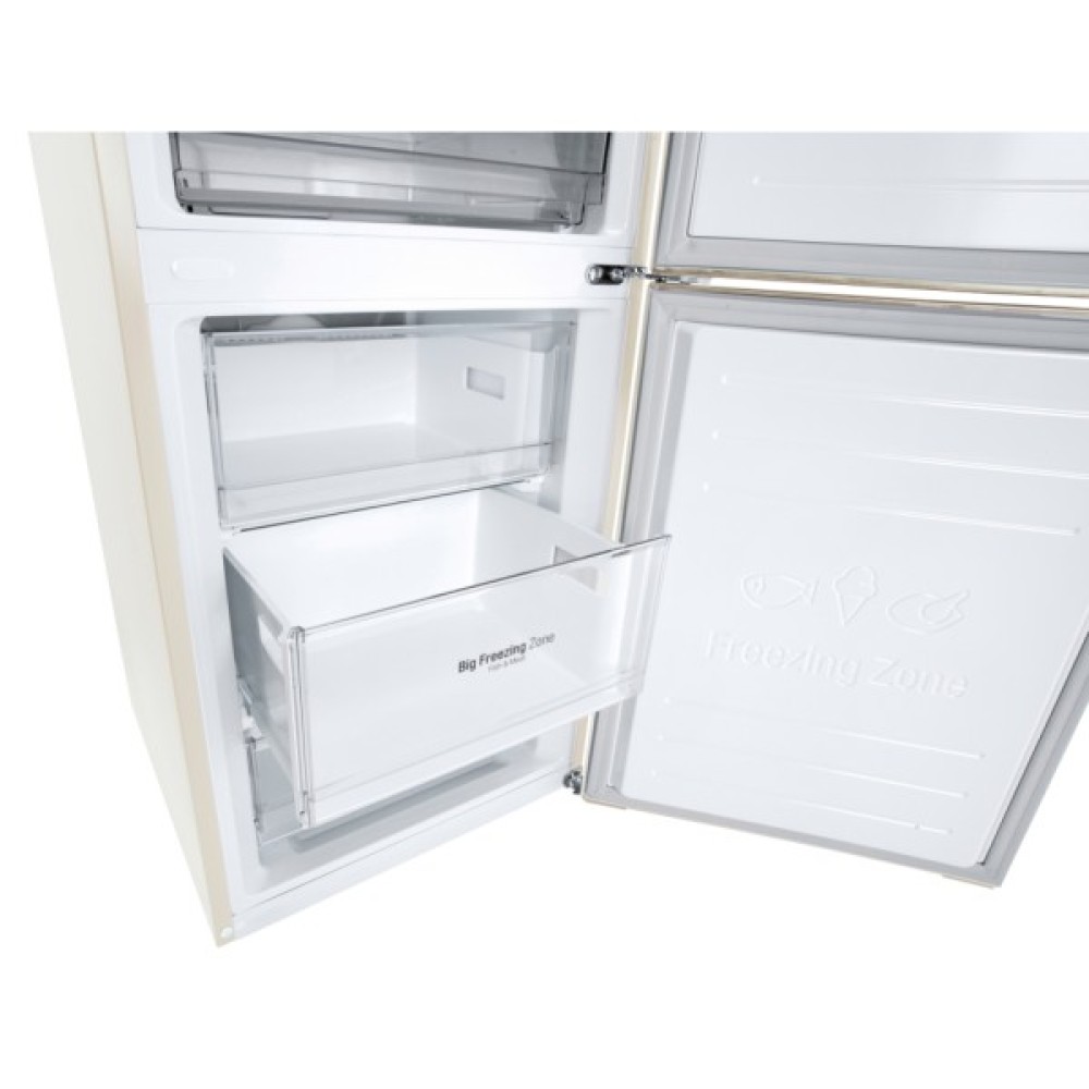 Особливу увагу варто звернути на багатопотокову систему охолодження Multi Air Flow, яка рівномірно розподіляє холодне повітря усередині камер, зберігаючи свіжість продуктів упродовж тривалого часу. Це в поєднанні з технологією DoorCooling+ забезпечує на 32% швидше та рівномірніше охолодження, гарантуючи, що ваші продукти залишаються свіжими незалежно від їхнього розташування в холодильнику.