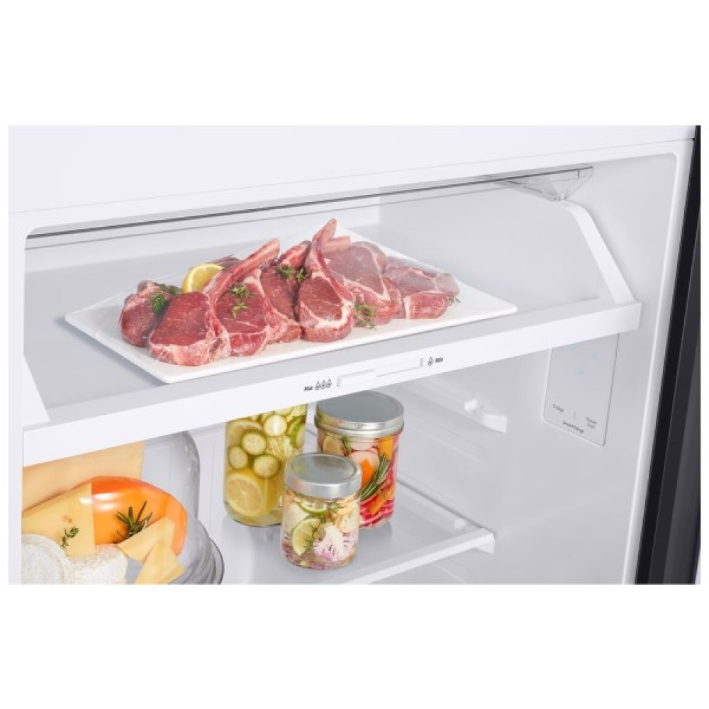 Окрім простого управління на передній панелі, холодильник оснащено вбудованим модулем Wi-Fi, що відкриває нові можливості для інтелектуального керування через мобільний додаток SmartThings. Ви зможете контролювати температуру, активувати швидке охолодження та отримувати корисні сповіщення, навіть якщо знаходитесь далеко від дому. Завдяки цій функції ви можете уникнути зайвих енерговитрат та бути впевненими, що двері холодильника завжди щільно зачинено.