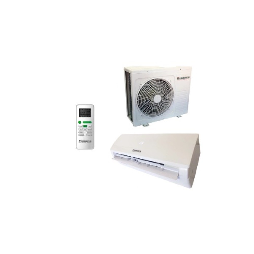 Настінний кондиціонер компанії Grunhelm - це потужний у своїй бюджетній категорії агрегат. Здійснює охолодження, обігрів, вентилятор, авто-осушення повітря. Хладогент R32 хімічна формула CH2F2. Низький рівень шуму. Економічний режим. Незалежне осушення. Таймер 24 години. Додатковий фільтер.