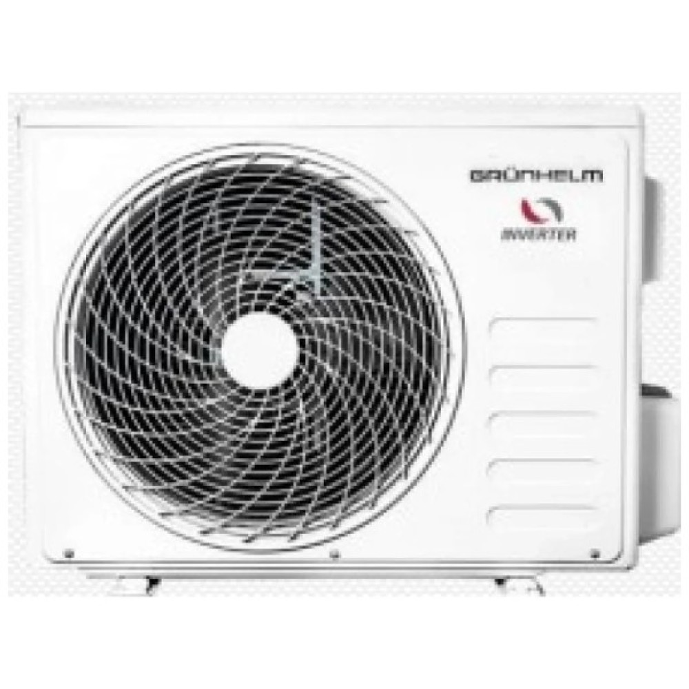 Grunhelm GAC-07GH-INV32 Inverio — інверторна настінна спліт-система для обігріву, вентиляції, авто-осушення повітря. Вона об'єднує внутрішній і зовнішній блоки з сучасним інверторним компресором, який забезпечує плавне регулювання потужності та зниження витрат на електроенергію. Холодоагент R32 – хімічна формула CH2F2. Функції: низький рівень шуму, економічний режим, незалежне осушення, таймер 24 години, режим IFEEL, прихований дисплей, блокування від дітей.
