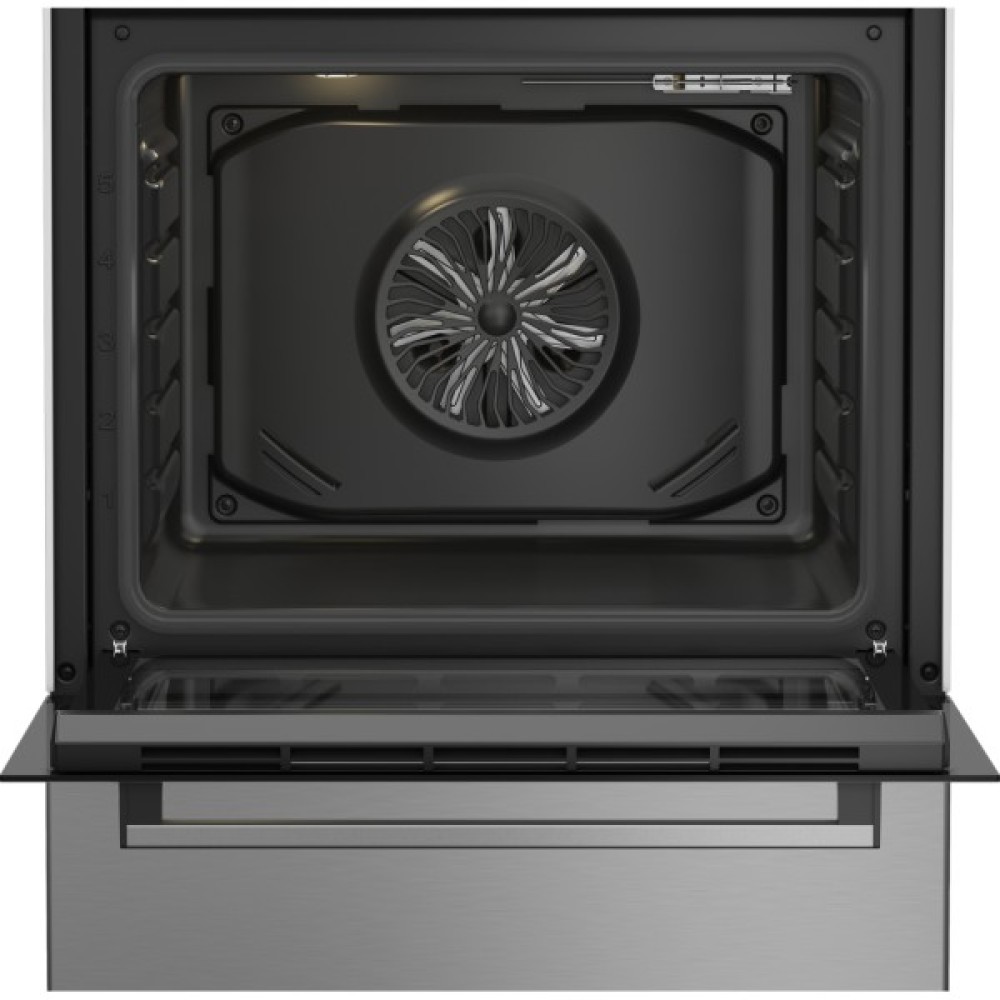 Це електрична плита стандартного розміру (60 см), з витонченим та сучасним зовнішнім виглядом — корпус із нержавіючої сталі, варильна поверхня зі склокераміки, з чотирма зонами нагріву. Духовка обʼємом 66 літрів, пропонує декілька режимів роботи — конвекція, гриль, швидкий розігрів і інші — що дозволяє готувати різноманітні страви. Є LED‑дисплей, функція парової очистки та інші зручні елементи, що роблять користування комфортнішим і менш затратним у плані догляду.