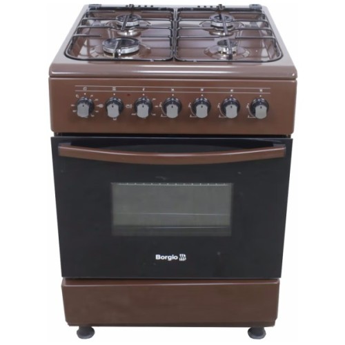 Комбінована плита BORGIO GE 640 оснащується чотирма газовими конфорками, а також електричною духовкою об'ємом 53 літри. Модель має емальовані грати та металеву кришку варильної поверхні.