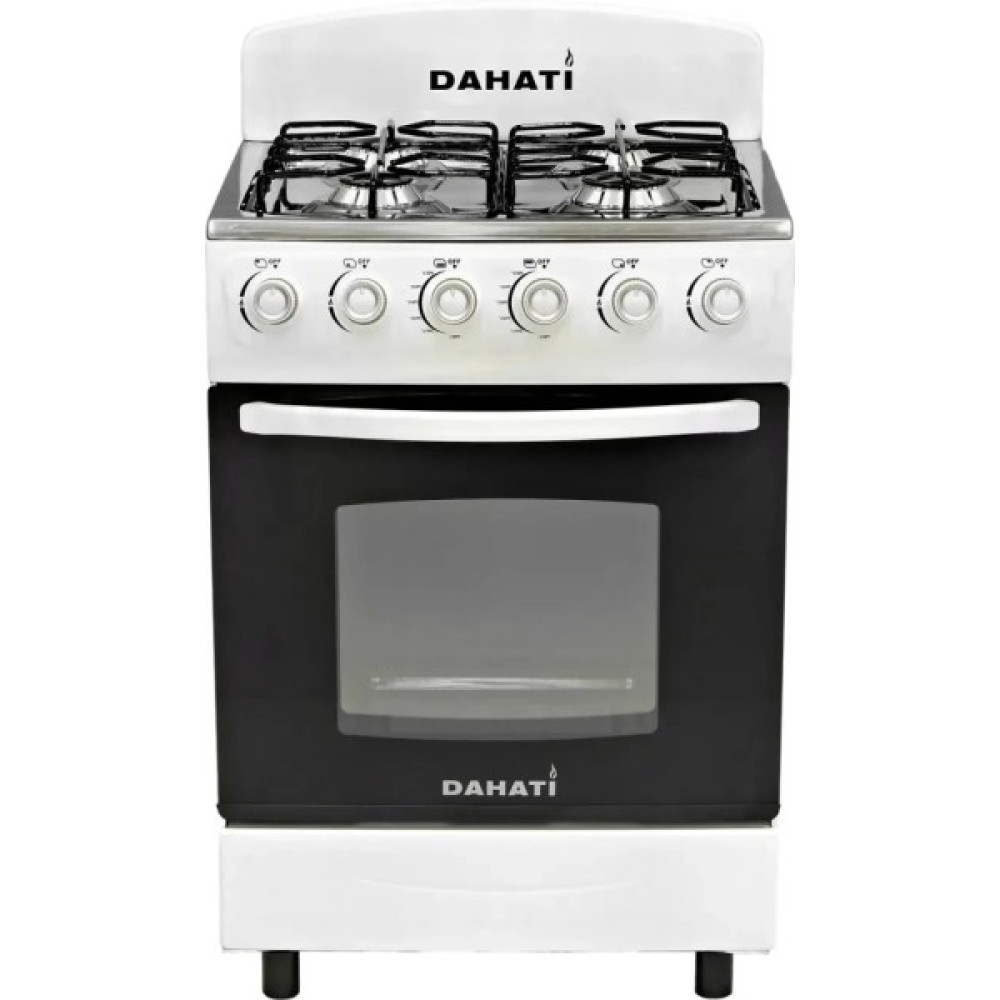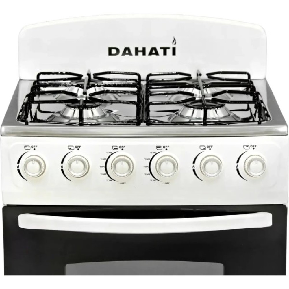 Плита газова DAHATI 2000-64 має газову робочу поверхню та газову духовку. Робоча варильна поверхня – нержавіюча сталь. Плита виконана в білому емальованому корпусі – класичний колір та легкий догляд для Вашої кухні. Плита оснащена п'єзорозпалом робочої поверхні та духовки. Духовка має 2 пальники - нижній стандартний плюс верхній пальник (гриль). На передній панелі розташовані перемикачі регулювання потужності полум'я пальників робочої поверхні та духовки.
