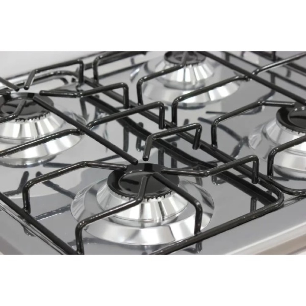 Нержавіюча робоча поверхня полегшить догляд за плитою та порадує довговічністю. Для приготування Ваших улюблених страв плита оснащена різними пальниками: 1 пальник підвищеної потужності, 2 середньої потужності та 1 мала потужність. Грати робочої поверхні виконані з посиленої сталі 8 мм. Для захисту стіни плита оснащена бортиком із нержавіючої сталі.