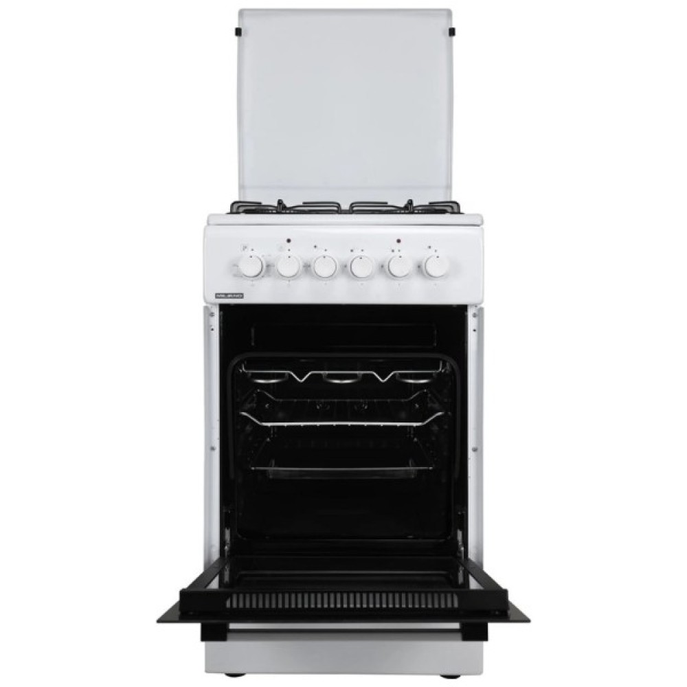 Варильна поверхня оснащена чотирма газовими конфорками з емальованими решітками, які вирізняються стійкістю до високих температур та легкістю у догляді. Вбудованого електрозапалювання немає, проте конструкція залишається надійною та простою у використанні, а система газ-контролю забезпечує додаткову безпеку під час приготування. Розміри плити 85 х 50 х 50 см дозволяють встановити її навіть у компактній кухні.