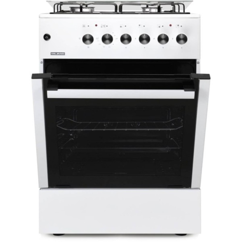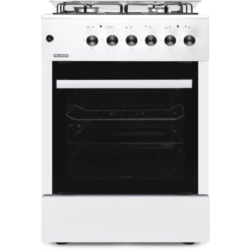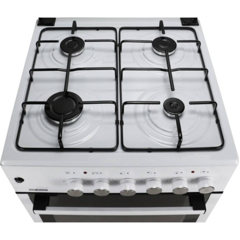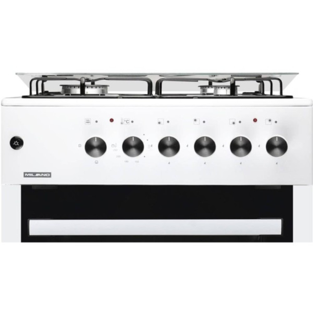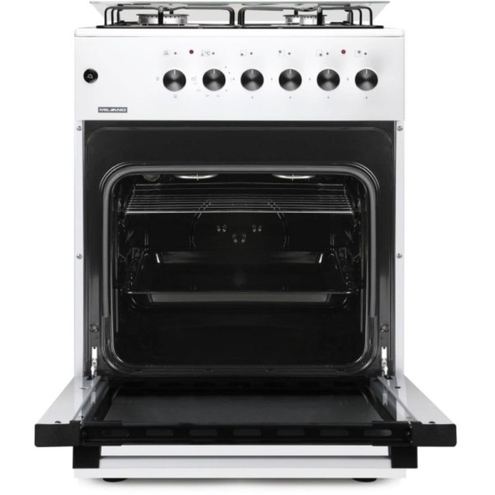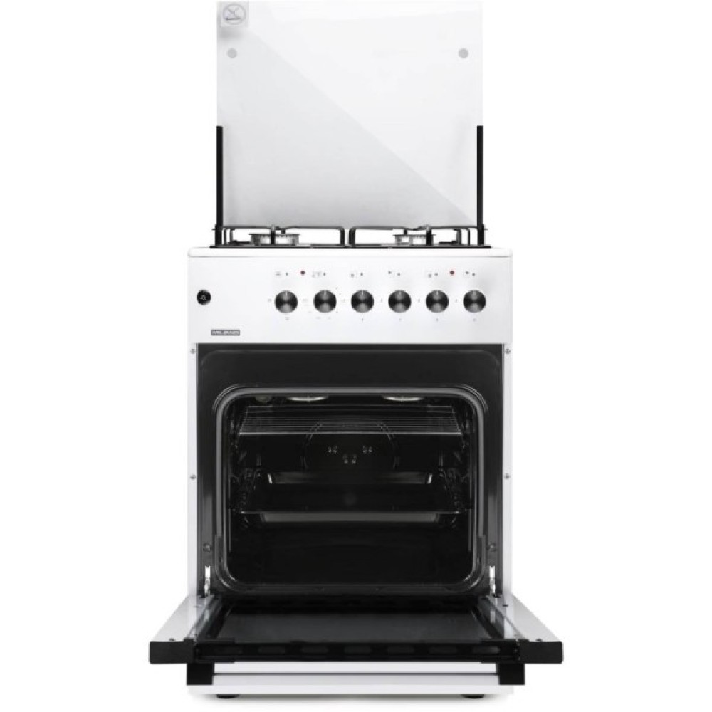 Комбінована плита Milano GAS COOKER ML60 Е40+ у білому кольорі поєднує газову варильну поверхню та електричну духовку, забезпечуючи зручність у щоденному приготуванні страв.