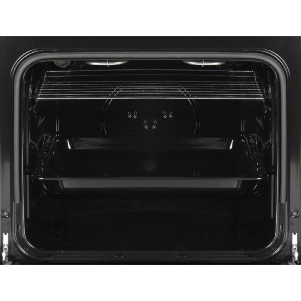 Електрична духовка об’ємом 65 літрів оснащена внутрішнім підсвічуванням, що дозволяє контролювати процес приготування. Дверцята мають два скляних шари, які утримують тепло всередині та залишаються безпечними зовні.