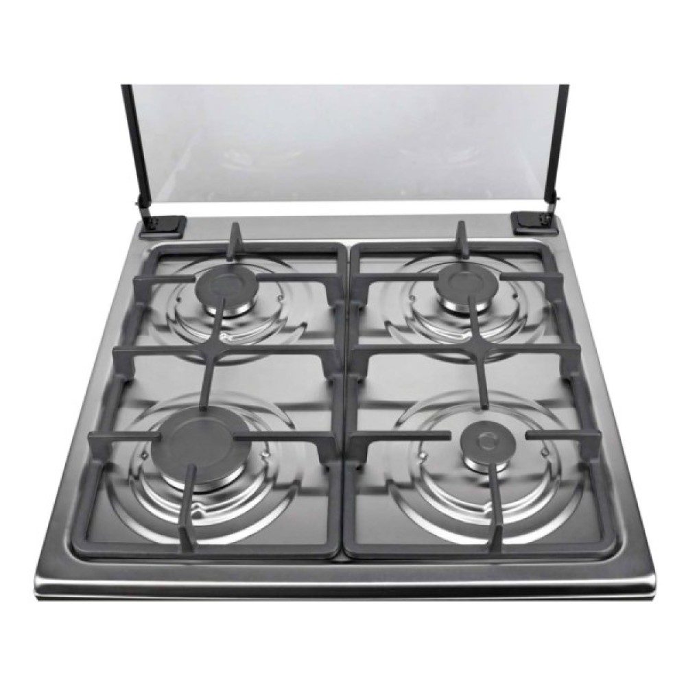 Завдяки скляній кришці плити, ви можете легко контролювати процес приготування, а також захистити варильну поверхню від пилу та забруднень, коли плита не використовується. У комплекті йдуть деко та грати, що розширюють можливості приготування. Ширина плити становить 57 см, висота — 85 см, а глибина — 57 см, що дозволяє їй ідеально вписатися в будь-який кухонний простір.