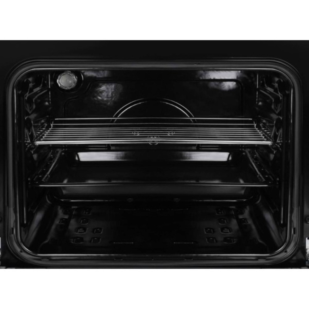 Духовка об'ємом 65 літрів з емаллю легкого очищення та рельєфними направляючими полегшує процес догляду та забезпечує рівномірне приготування їжі. Додаткові функції, такі як електропідпал та підсвітка духовки, роблять процес приготування ще зручнішим.