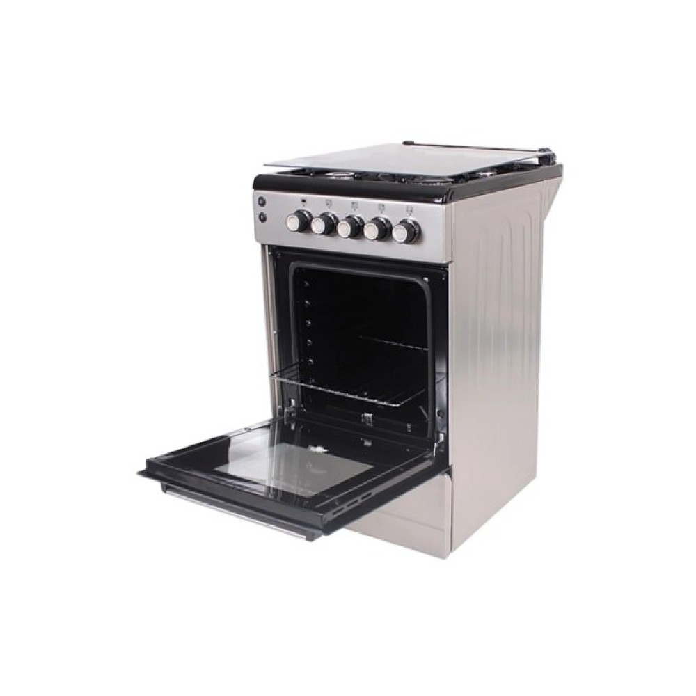 Варильна поверхня виготовлена з емалі, що забезпечує легке очищення та довговічність. Емальовані сталеві решітки додають стійкості та надійності, а дві решітки дозволяють готувати на двох рівнях одночасно. Газова духовка об'ємом 46 літрів оснащена термометром та підсвіткою, що робить процес готування зручним та контрольованим.