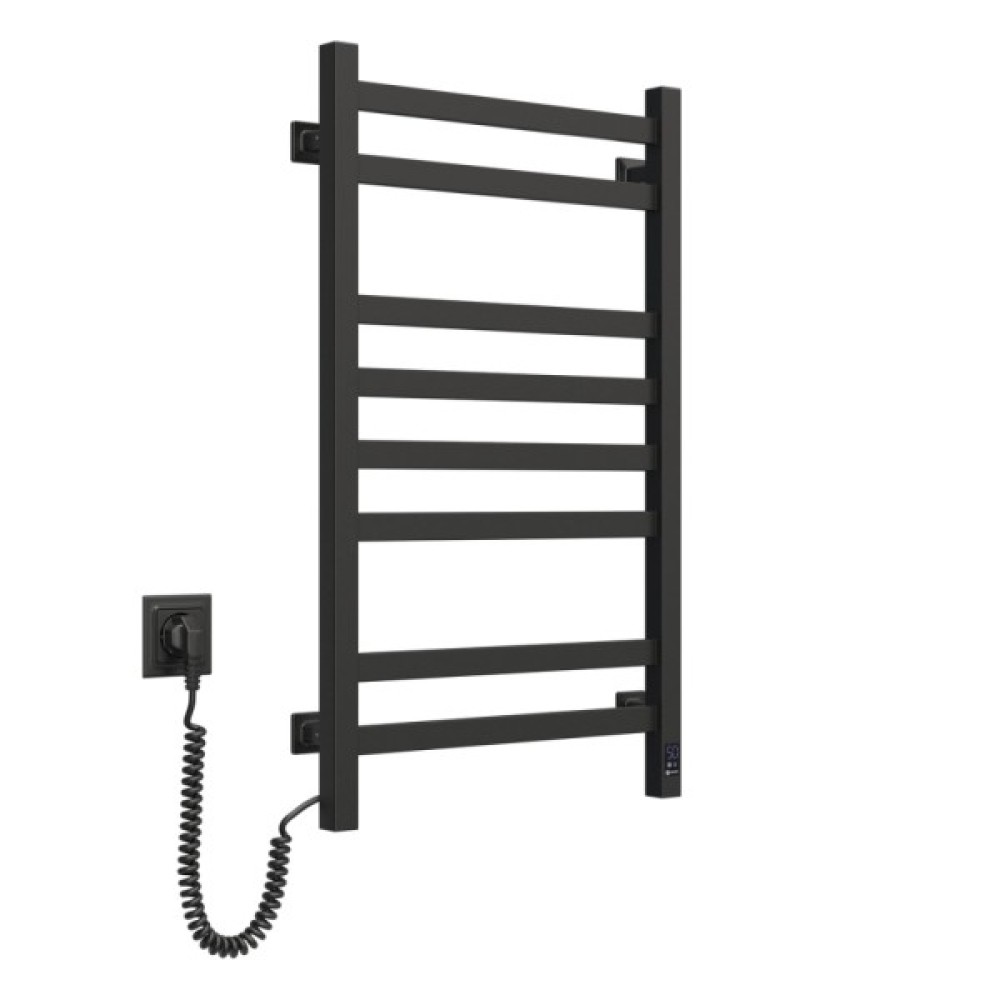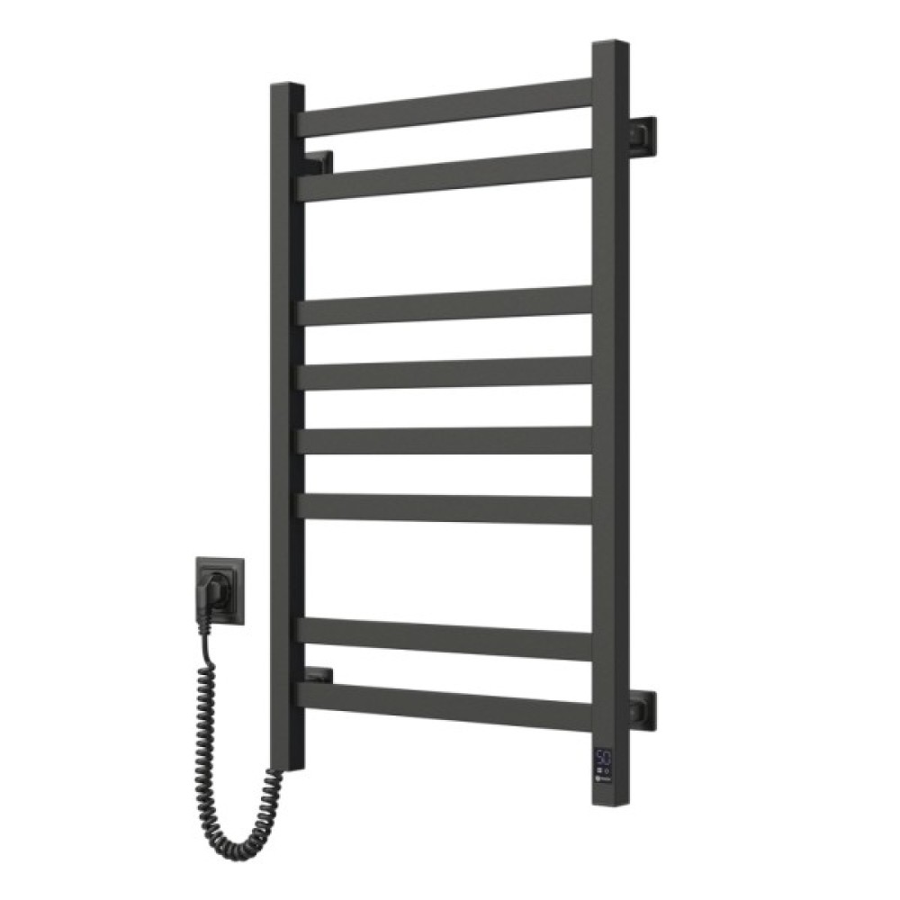 Рушникосушка Авангард 480х800 Sensor (розташування шнура з вилкою — ліворуч; колір — чорний муар) від українського виробника NAVIN виготовлена з вуглецевої сталі, яка відрізняється високою якістю й міцністю. Модель має надійне порошкове покриття. Товщина стінки колекторів (стійок) і перемичок сушки для рушників дорівнює 1,5 мм.