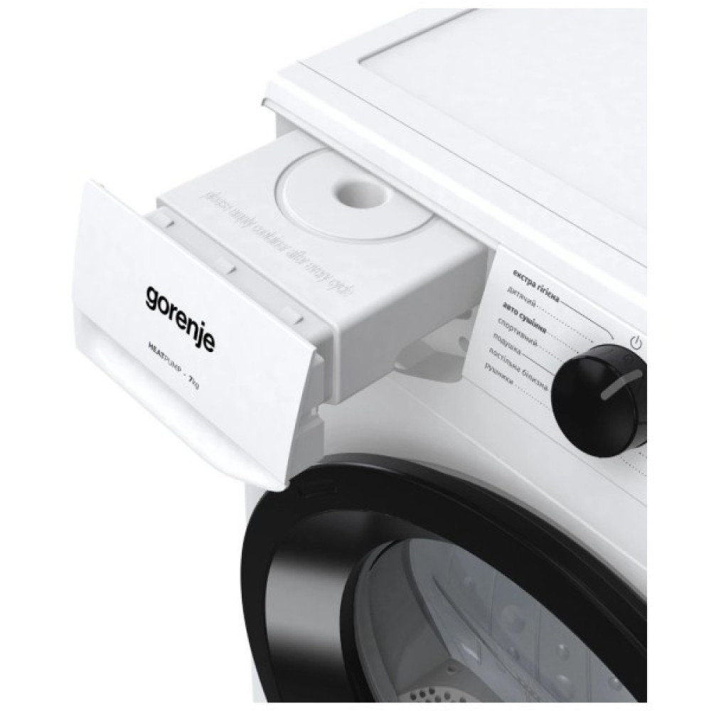 Модель Gorenje G200 D2HNE7E/UA відрізняється тихою роботою (64 дБ), має ергономічний білий корпус і зручний кут відкриття дверцят 135°. Система AutoDrain дозволяє підключити машину безпосередньо до каналізації, усуваючи потребу вручну зливати воду з конденсатного резервуара. Це сучасне, практичне рішення для дому, яке поєднує функціональність, економічність і турботу про якість вашого одягу.