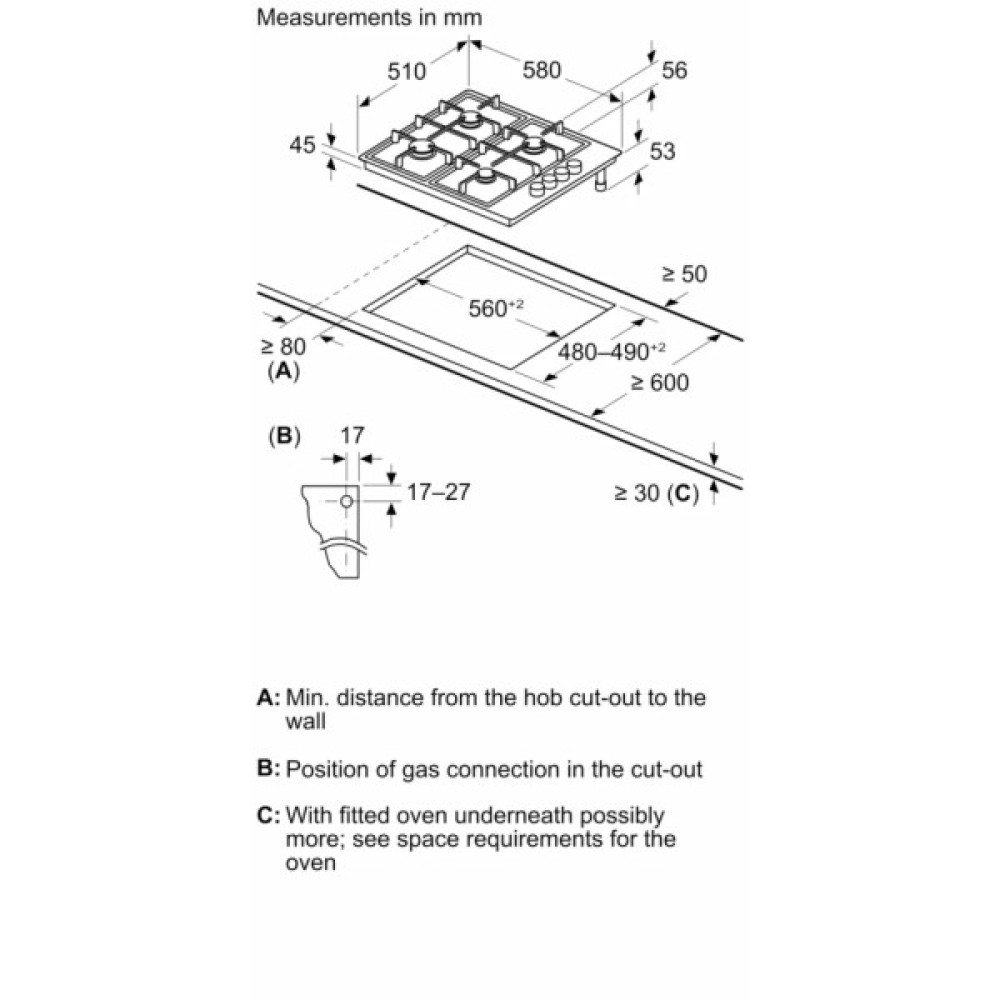 Багатофункціональність і продуманість Bosch PBH6C6K90R стає очевидною навіть при встановленні. Завдяки оптимальним розмірам ніші для вбудовування (4.3 х 56.0 - 56.2 х 49 см), ця варильна поверхня вписується в будь-який кухонний простір, відповідаючи вимогам сучасного ергономічного дизайну. Вона також розрахована на використання природного газу, що робить її не лише ефективною, а й екологічною.