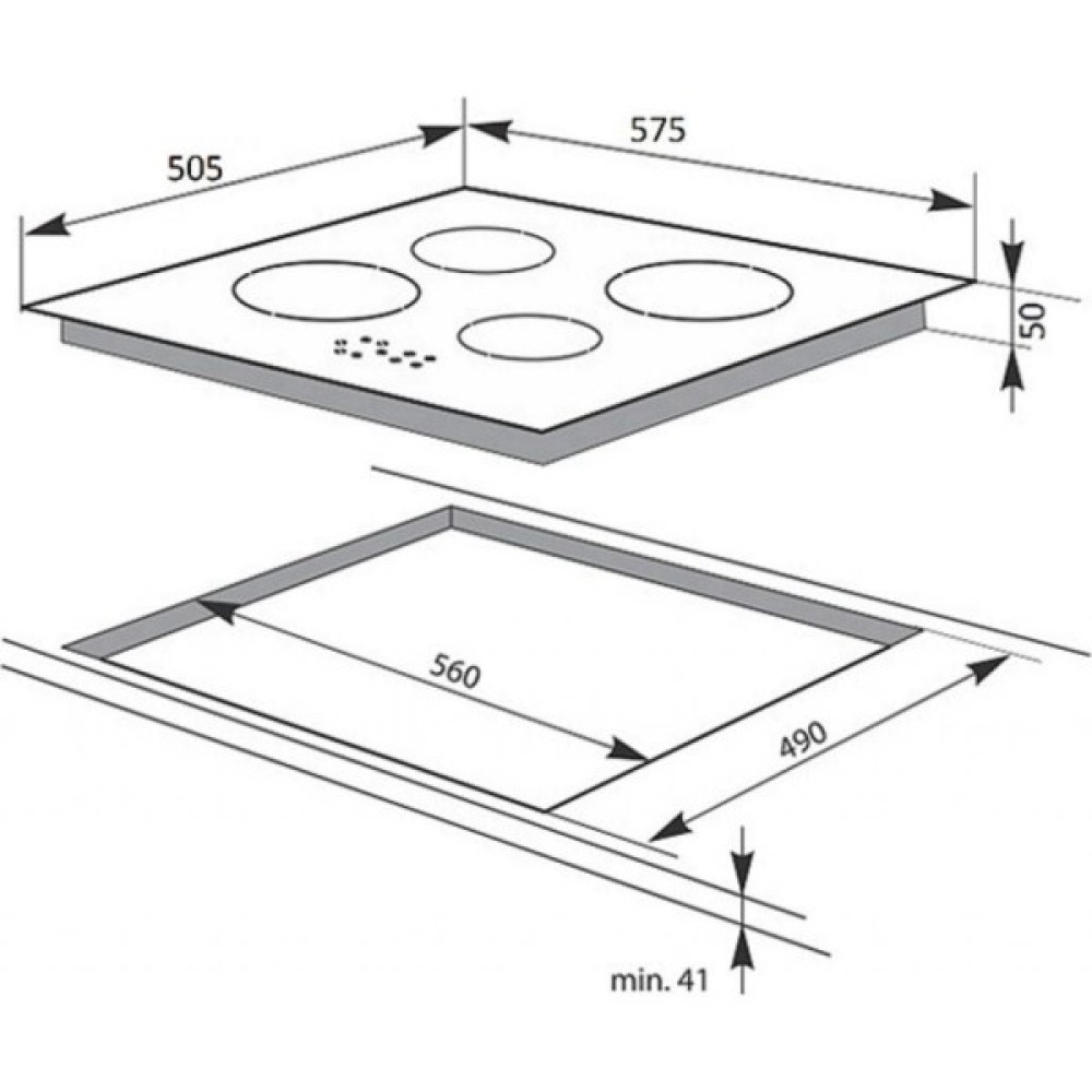 Поверхня оснащена чотирма конфорками, що надає змогу одночасно готувати різноманітні страви. Загальна потужність підключення становить 6500 Вт, що гарантує швидкий та потужний нагрів. Сенсорне управління дозволяє легко регулювати температуру та активувати функції натиском пальця. Для зручності користування передбачено цифрову індикацію ступеня нагріву, що наочно інформує про поточний рівень тепла.
