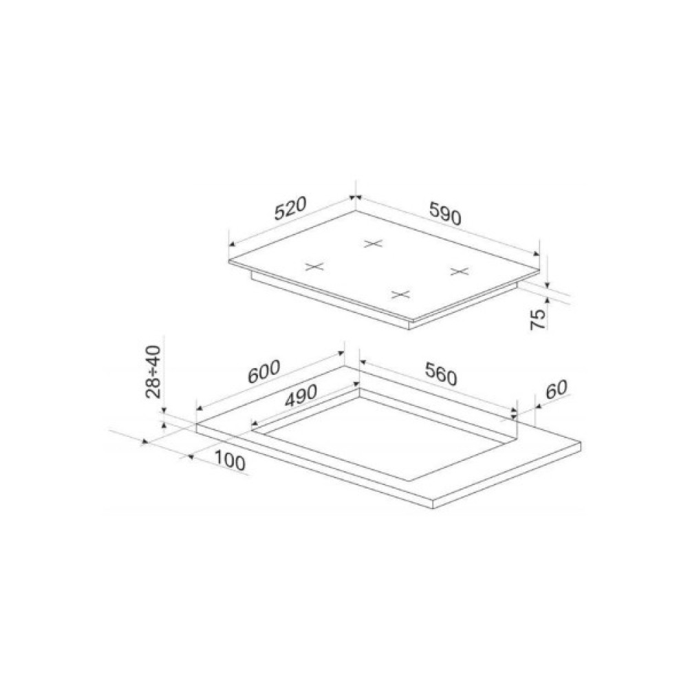 Завдяки компактним розмірам, які складають 7.5 х 59 х 52 см, ця варильна поверхня чудово підходить для вбудовування у стандартні кухонні ніші. Призначена для розмірів ніші 7.5 х 56 х 49 см, вона займає мінімум простору й дозволяє залишити достатньо місця для інших кухонних приладів та аксесуарів.