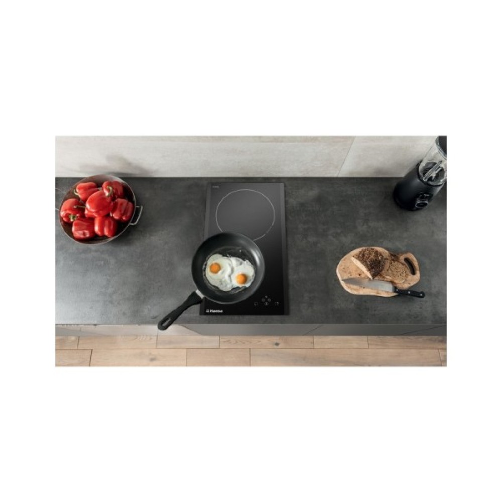 Завширшки всього 30 см, Hansa BHI38377 чудово підходить для невеликих кухонь, водночас надаючи дві зручні конфорки з можливістю регулювання потужності до 9 рівнів. Функція турбо-режиму дозволяє швидко досягати необхідної температури, збільшуючи швидкість приготування. Сенсорне LED-управління розміщено зручно попереду, що робить контроль процесу приготування інтуїтивним.
