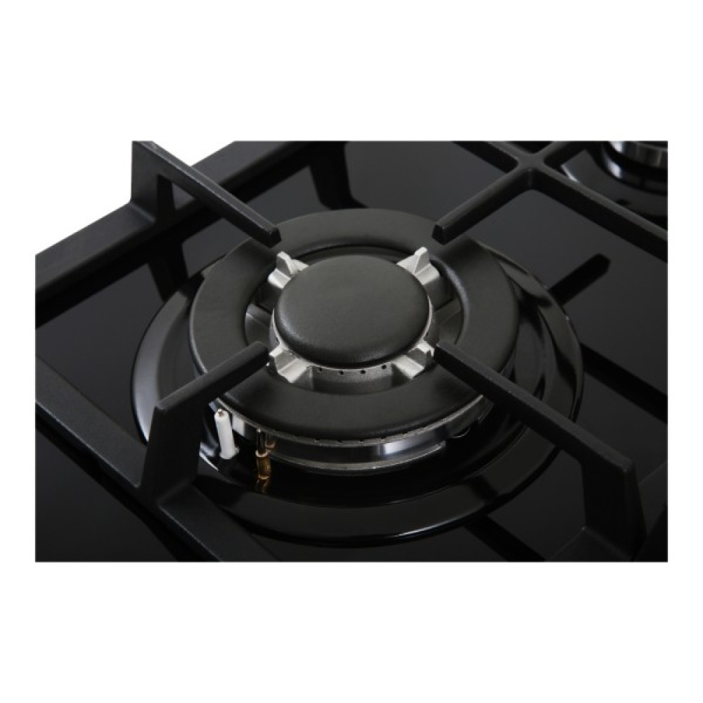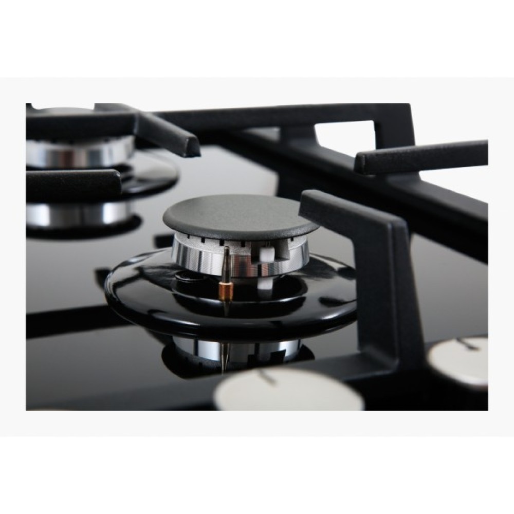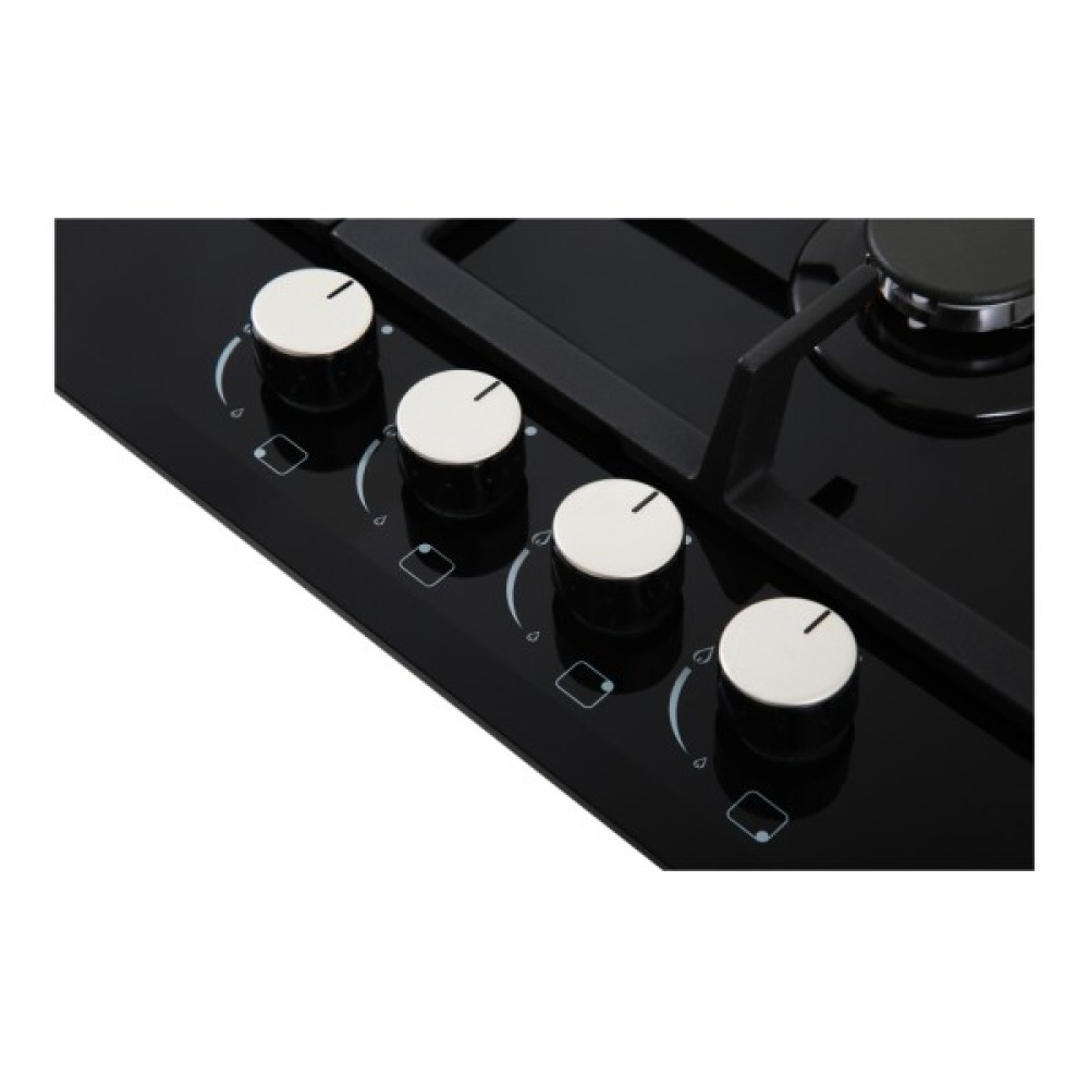 Однією з ключових особливостей Interline HGG 764 FGT BA є використання загартованого скла як матеріалу поверхні, що додає їй вишуканості та забезпечує легкий догляд за поверхнею. Чорний колір панелі гармонійно вписується у будь-який інтер'єр, як класичний, так і сучасний, підкреслюючи шик та елегантність вашої кухні.
