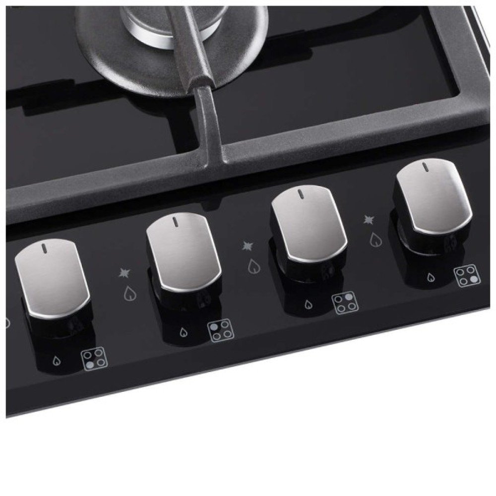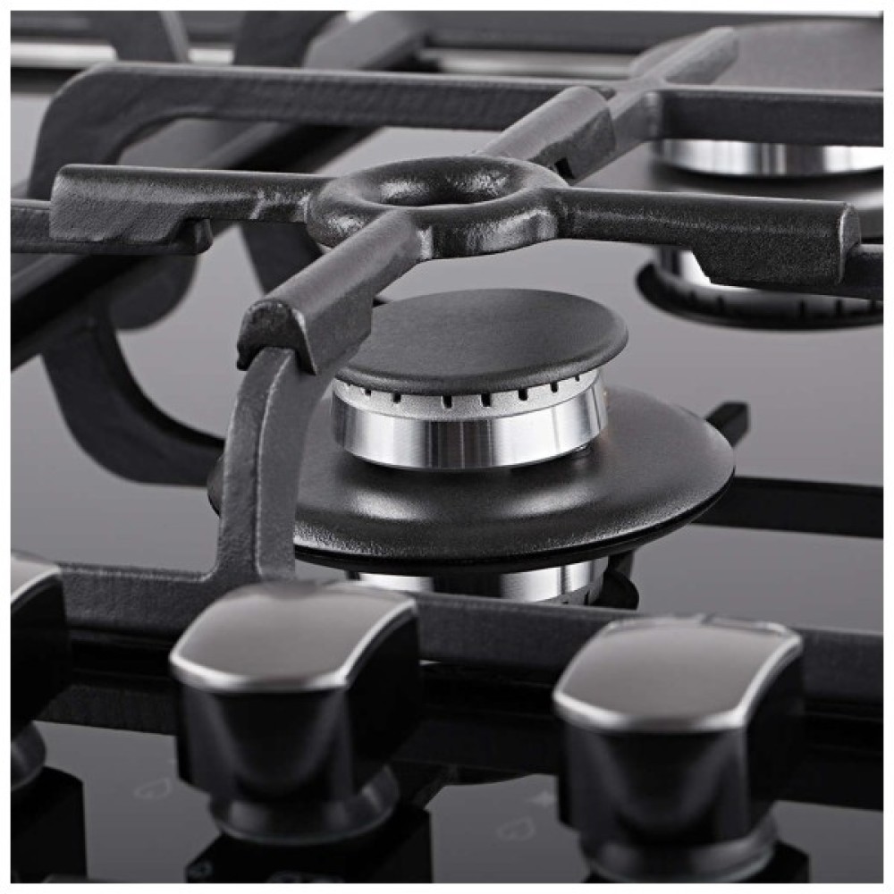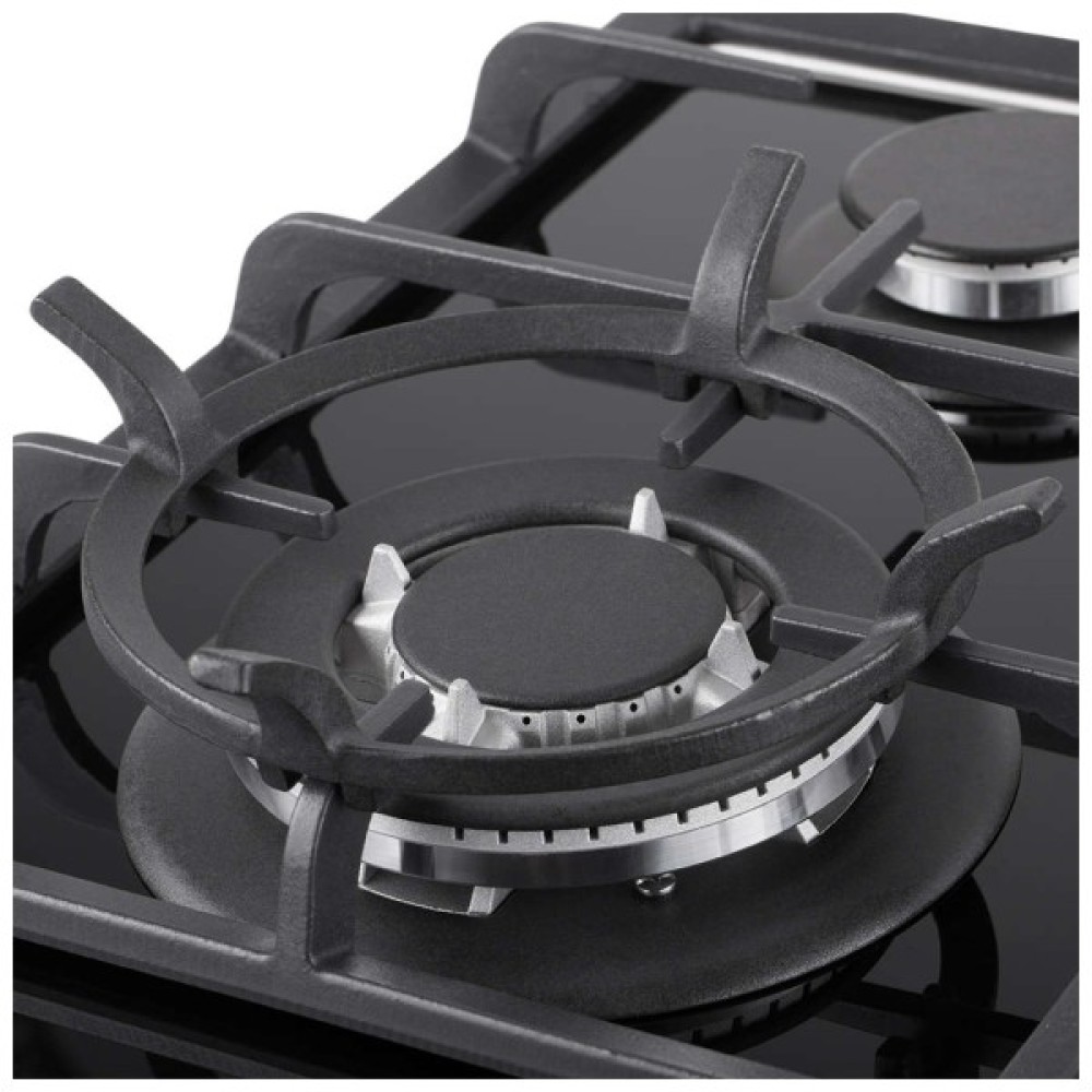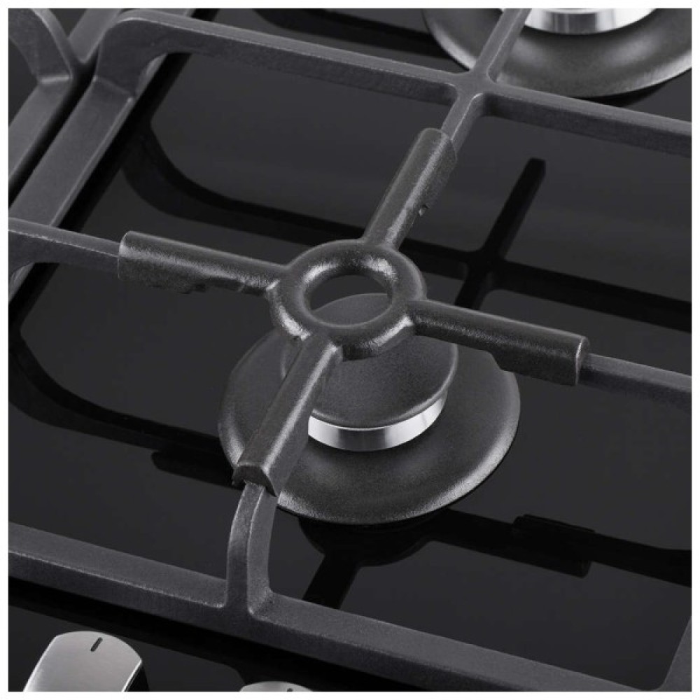 Міцні чавунні решітки стійкі до високих температур і легко знімаються, що спрощує догляд за поверхнею, підтримуючи її в ідеальному стані. Люксове чорне виконання підкреслює вишуканість інтер’єру, гармонічно вписуючись у будь-який дизайн кухні. Завдяки можливості легкого вбудовування у меблі, ця варочна поверхня не лише заощаджує простір, а й надає Вашій кухні сучасного вигляду та неперевершеного функціонального комфорту.