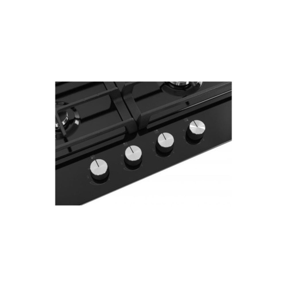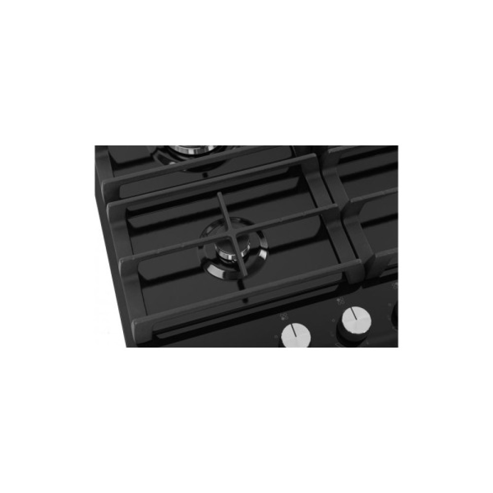 Ця газова варильна поверхня виконана з надійного загартованого скла, яке не тільки надає їй елегантного вигляду, але й забезпечує високу стійкість до подряпин та ударів. Її чорний колір гармонійно вписується в будь-який інтер'єр, додаючи сучасності та стилю.