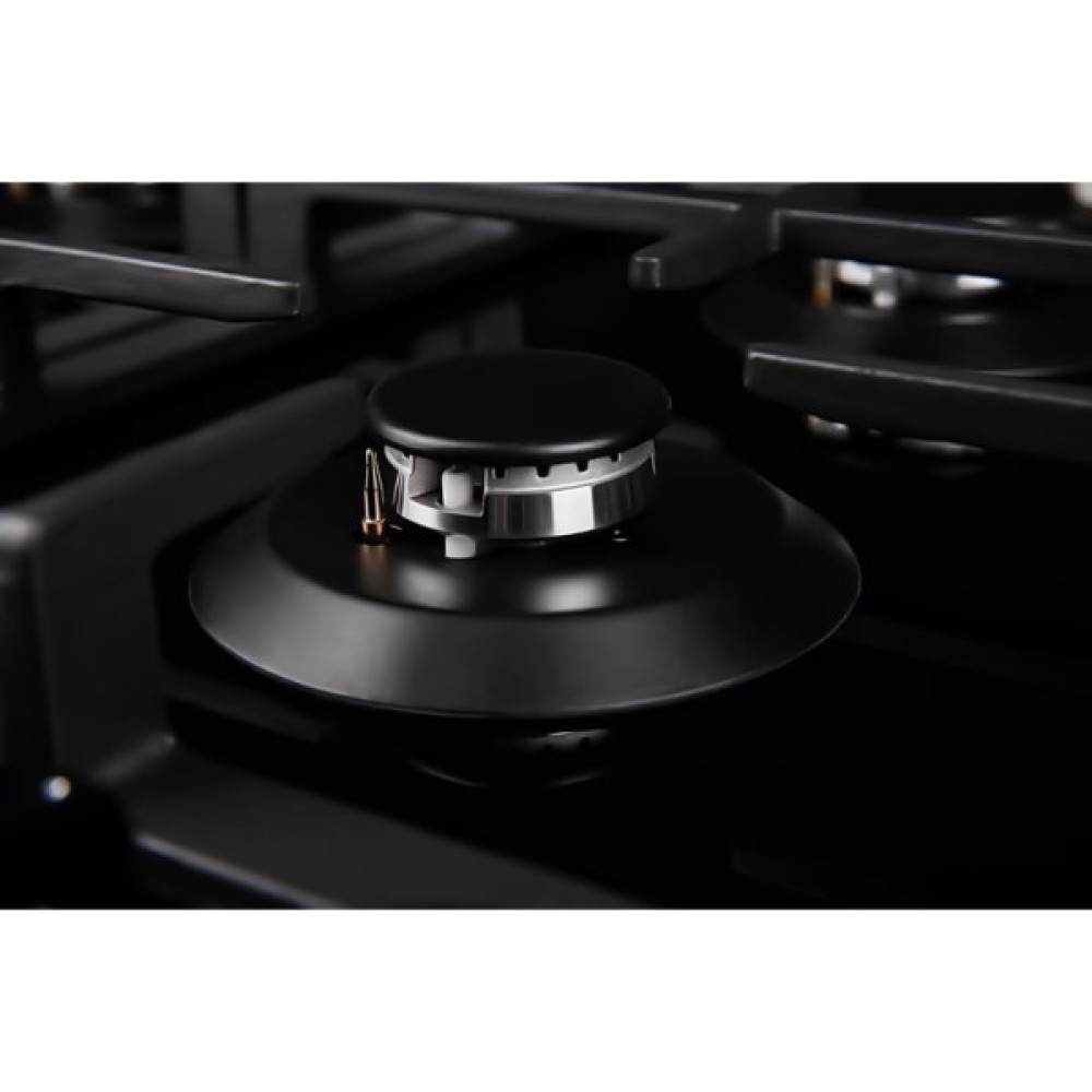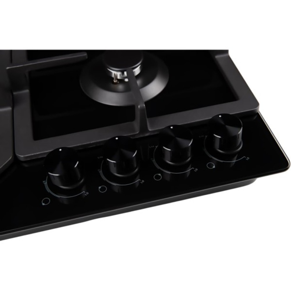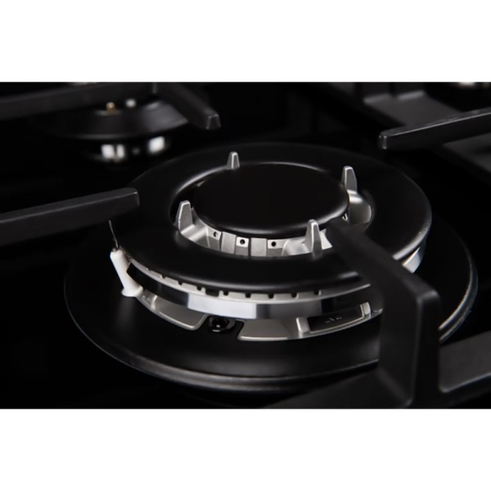 Ця варильна поверхня оснащена чотирма газовими конфорками різної потужності, що дозволяє адаптувати приготування страв до ваших потреб. Особливої уваги заслуговує потужна турбоконфорка WOK, ідеальна для швидкого смаження та приготування страв азійської кухні. Вона забезпечує интенсивний нагрів, що дозволяє швидко досягати високих температур.