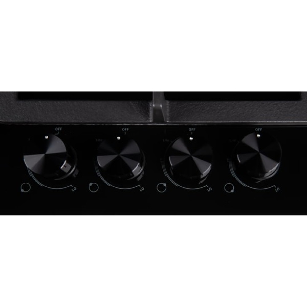 Механічне управління з поворотними регуляторами розташоване зручно на фронтальній панелі, що забезпечує легке та інтуїтивно зрозуміле використання. На додаток, варильна поверхня має електропідпал, який спрощує процес запалювання конфорок — достатньо лише повернути ручку, і іскра сама запалює газ.