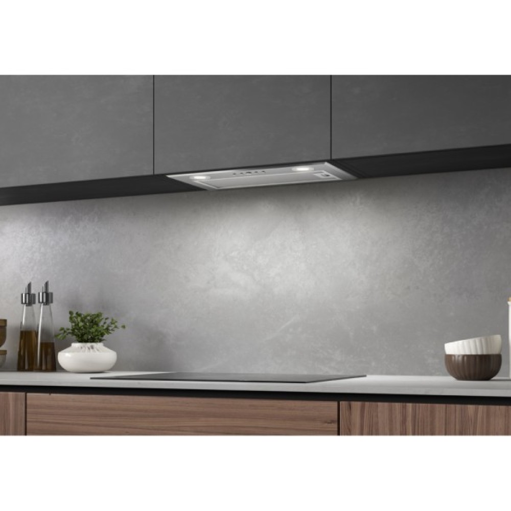 Вбудована витяжка Faber BI 52 SS 2LS шириною 52 см забезпечує ефективне очищення повітря з максимальною продуктивністю до 920 м³/год. Оснащена трьома швидкостями, сенсорним керуванням і LED-підсвіткою для комфортної роботи на кухні.