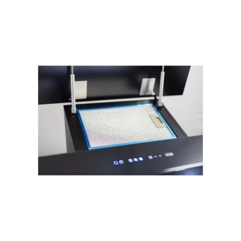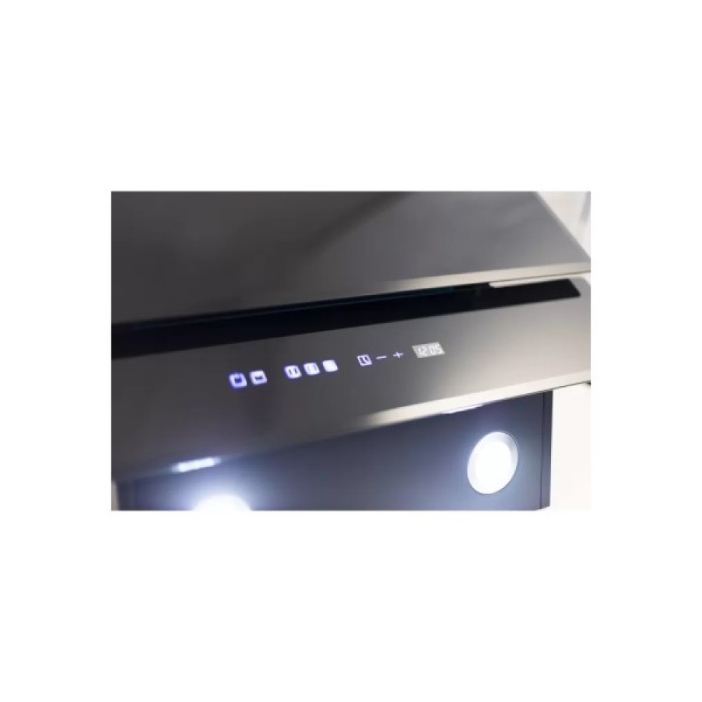 Витяжка оснащена сучасним сенсорним керуванням, яке забезпечує легкість та точність у налаштуванні всіх параметрів. На дисплеї відображаються поточні налаштування, що робить інтуїтивно зрозумілим процес управління. Висвітлення робочої зони здійснюється за допомогою світлодіодів потужністю 2x2 Вт, які забезпечують яскраве та економічне світло, покращуючи видимість та створюючи комфортні умови для приготування їжі.