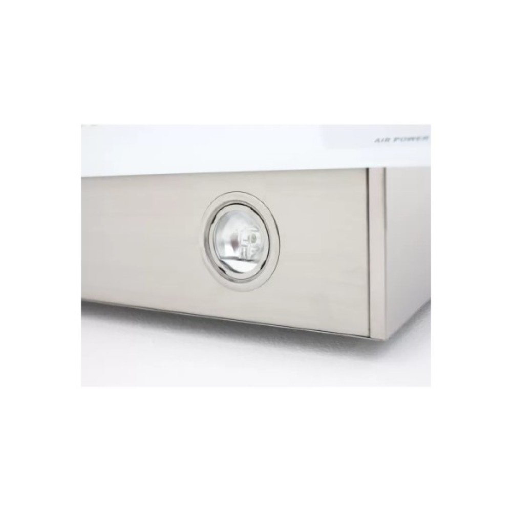 Висвітлення витяжки здійснюється за допомогою світлодіодів потужністю 2x0.5 Вт, що забезпечує яскраве та економічне освітлення робочої зони. Один потужний двигун та три швидкості роботи дозволяють адаптувати продуктивність витяжки під поточні потреби.