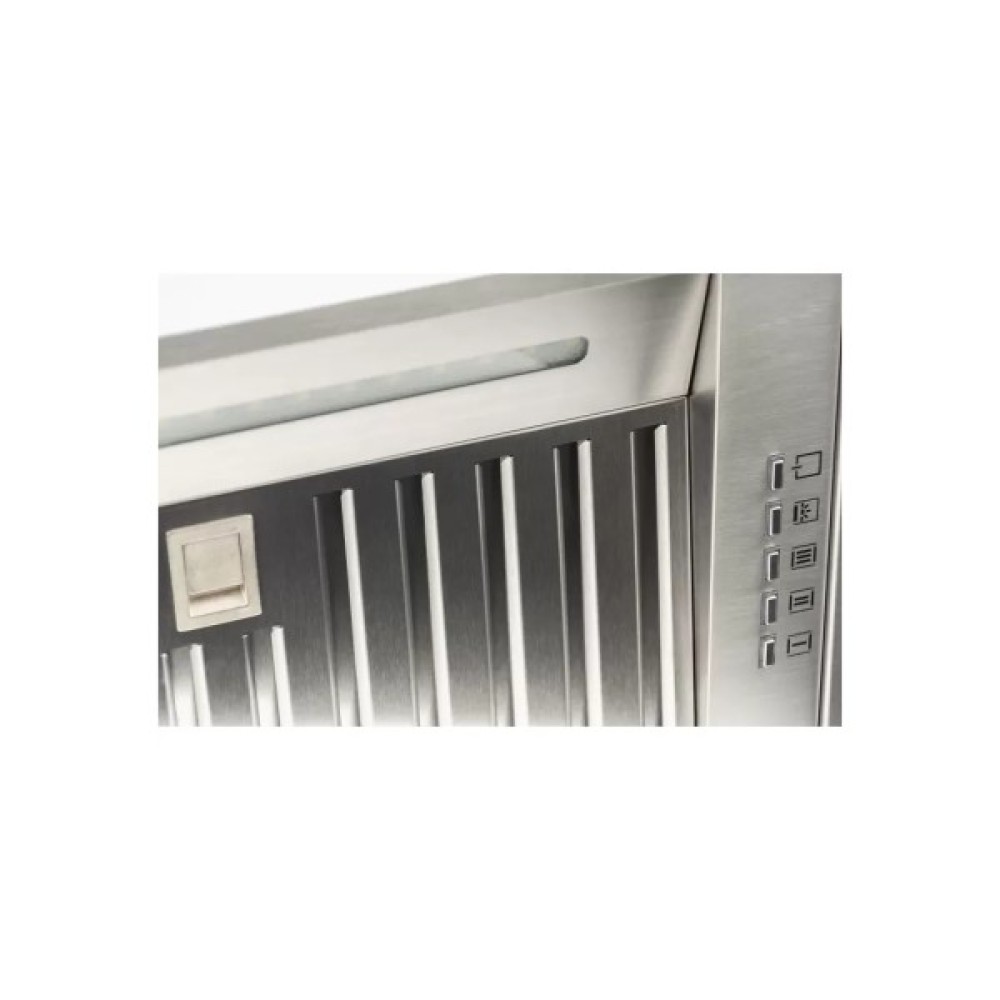 Управління витяжкою здійснюється за допомогою кнопок та кулісного перемикача, що забезпечує простоту та зручність в експлуатації. Корпус з нержавіючої сталі не тільки надає витяжці стильного вигляду, але й забезпечує довговічність і стійкість до корозії. Світлодіодне освітлення забезпечує яскраве та економічне світло, дозволяючи бачити всі процеси на кухні.