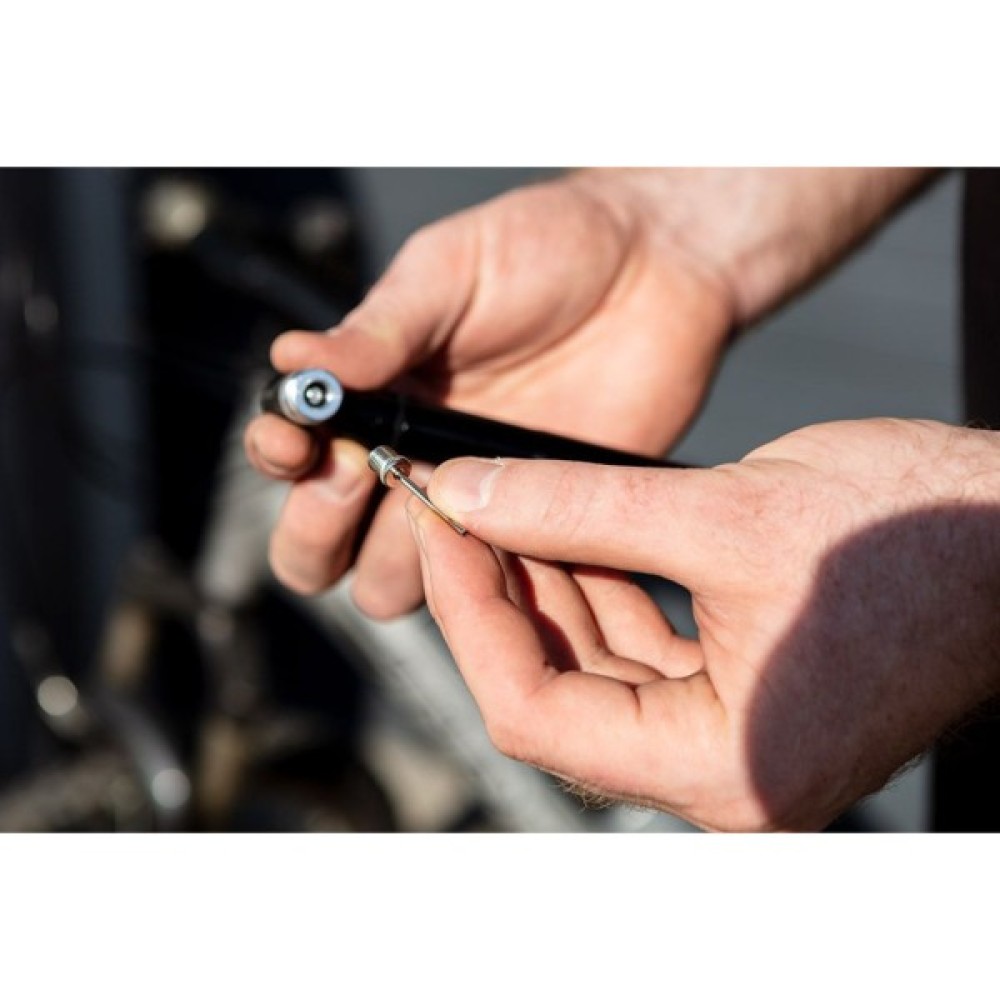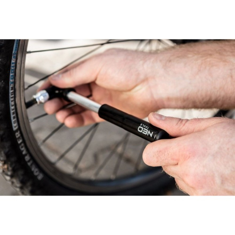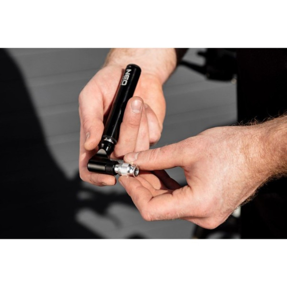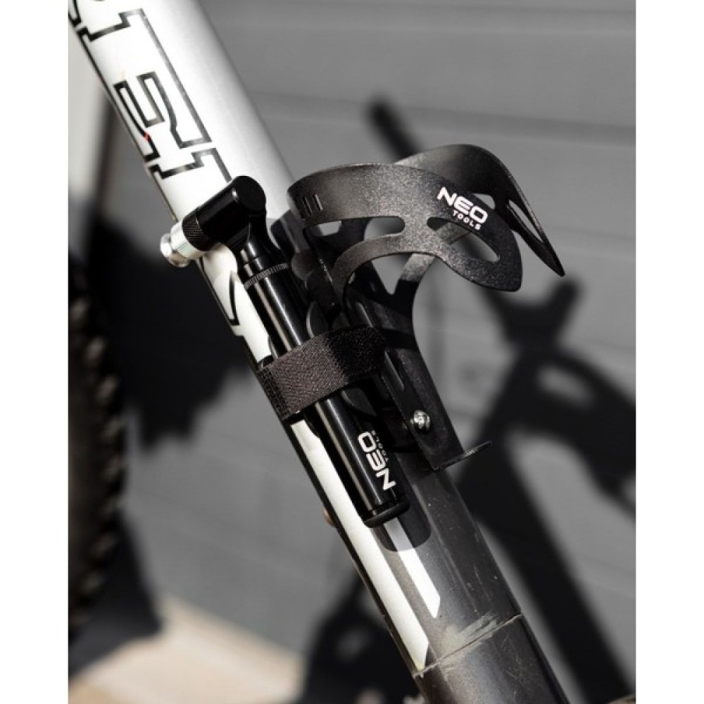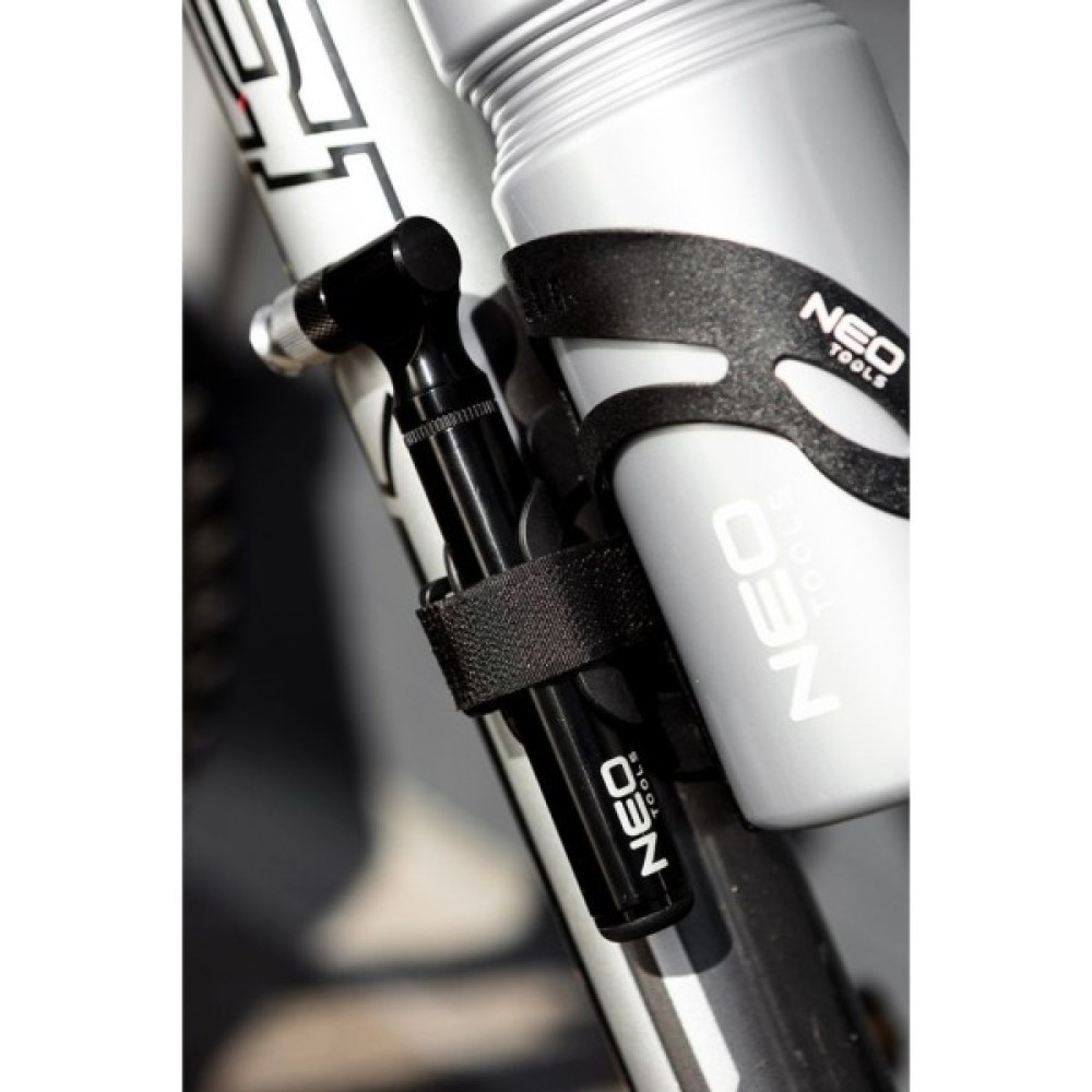 Міні-велосипедний насос 91-015 від NEO - це зручний насос, корпус якого виготовлений з легкого алюмінію. Інструмент має вагу всього 70 г. Його довжина до розкладання - 13,7 см. Він досягає максимального тиску 130 фунтів на квадратний дюйм і сумісний з клапанами Presta (FV) і Schrader (AV). Міні-насос від бренду NEO має можливість кріплення на тримач для пляшечок. Практична ручка, гвинти та голка кулькового насоса входять до комплекту. Насос рекомендується для велосипедних подорожей, екскурсій та відпочинку.