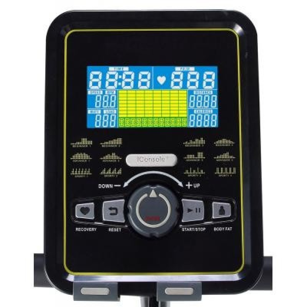 - Комп'ютер: кольоровий LCD з індикацією пульсу, часу, дистанції, кол-ва оборотів в хв, швидкості, калорій, потужність (Ватт), навантаження;