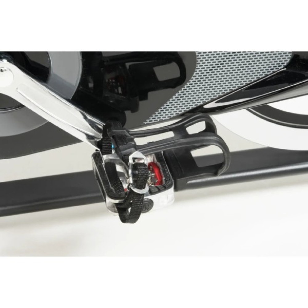 Важкий 26-кілограмовий маховик разом із ремінним приводом забезпечують безшумність роботи тренажера та достатнє навантаження навіть для підготовлених спортсменів. Спін-байк розрахований на вагу до 150 кг та підійде для користувачів зростом до 2 м. Нагрудний кардіодатчик для бездротового вимірювання пульсу буде доречним під час тренування для контролю частоти серцевих скорочень. Спортивне сидіння й кермо регулюються за висотою та в горизонтальній площині, забезпечуючи індивідуальне настроювання. Транспортувальні ролики в передній частині тренажера дають змогу вільно переміщати його кімнатою.