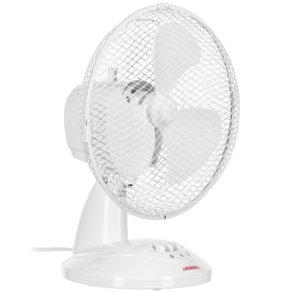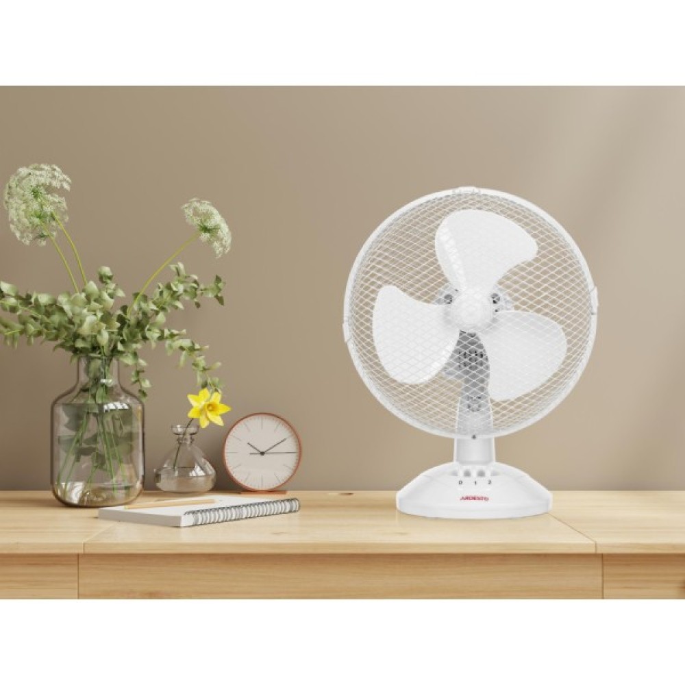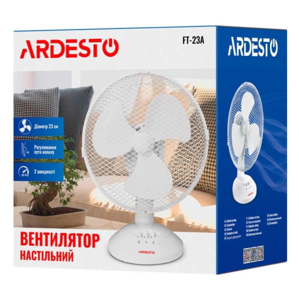 Настільний вентилятор ARDESTO FT-23A білого кольору на круглій опорі пасуватиме до будь-якого інтер’єру. Потужність вентилятора становить 30 Вт, а рівень шуму – 60 дБ. Керування механічне – за допомогою двох клавіш перемикання швидкості.