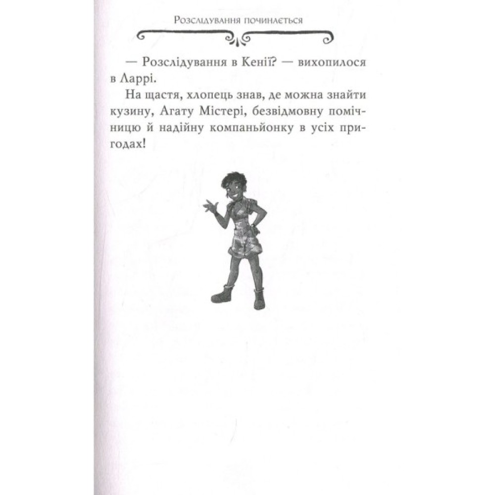 Наділена дивовижним відчуттям і феноменальною пам’яттю, Агата Містері мріє стати письменницею, але це в майбутньому. Поки ж вона — чудовий детектив! Разом із простакуватим кузеном Ларрі, студентом школи детективів, вона подорожує світом, розгадуючи найзаплутаніші таємниці. Допомагають їм відданий мажордом, капосний сибірський кіт і сила-силенна дивакуватих родичів.