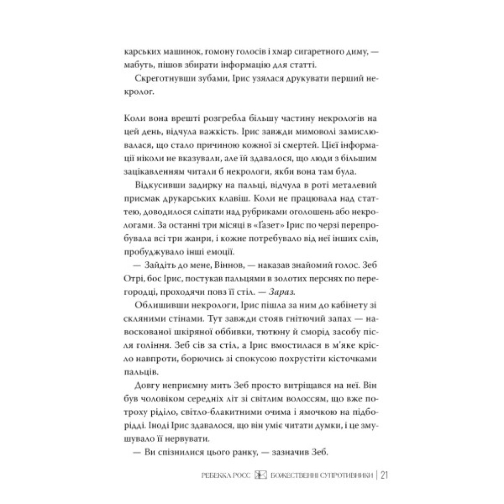 Вісімнадцятирічна Ірис Віннов хоче єдиного — зберегти родину. Її брат змушений воювати за богів і зникає безвісти на передовій, а мама топить горе в чарці, тож останньою надією для дівчини стає посада колумністки в «Оус ґазет».