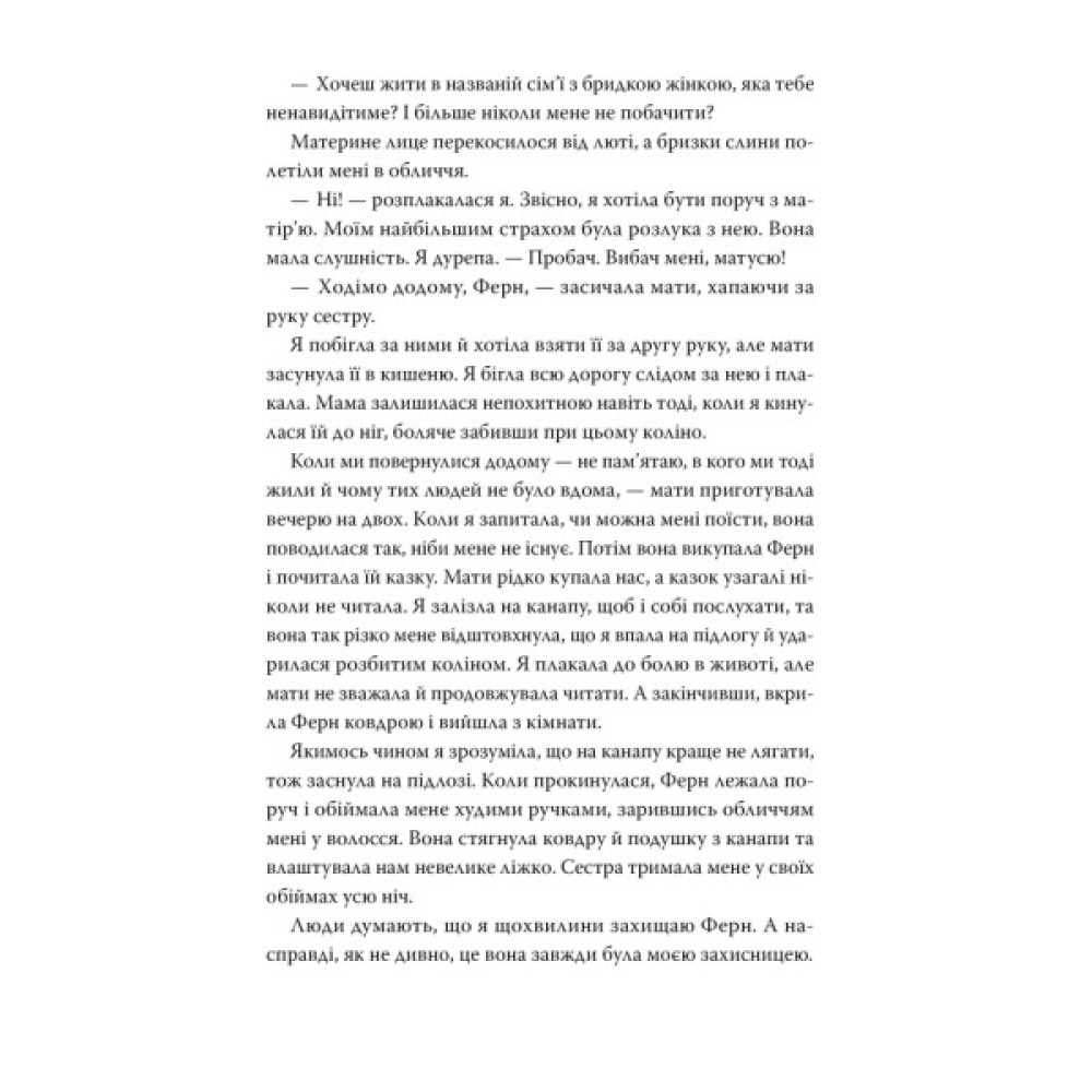 У цій вигадливій, карколомній та приголомшливій історії про сімейні таємниці план Ферн зруйнує фундамент, на якому вона так виважено вибудувала власне життя, і розкриє страшні секрети з минулого.