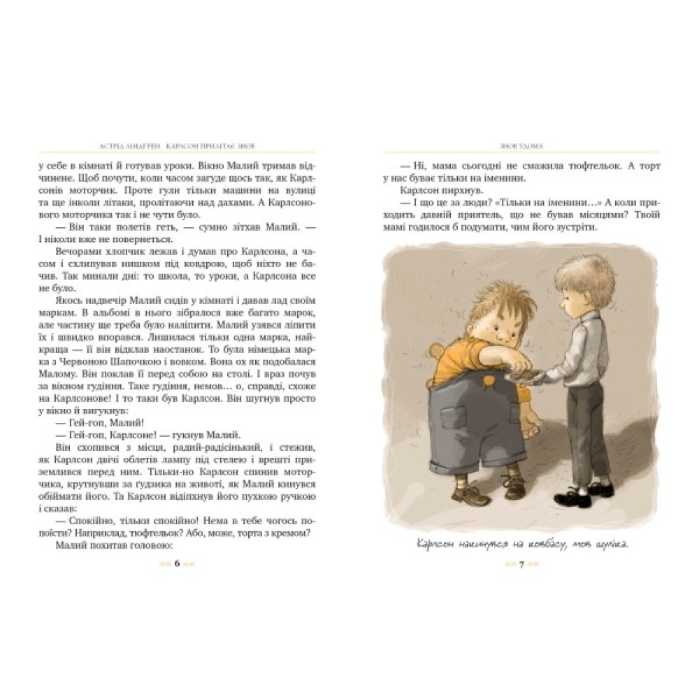 «— Тут, нагорі, все якесь не таке, — сказав Малий, коли Карлсон злетів з ним на ґанок перед хаткою».