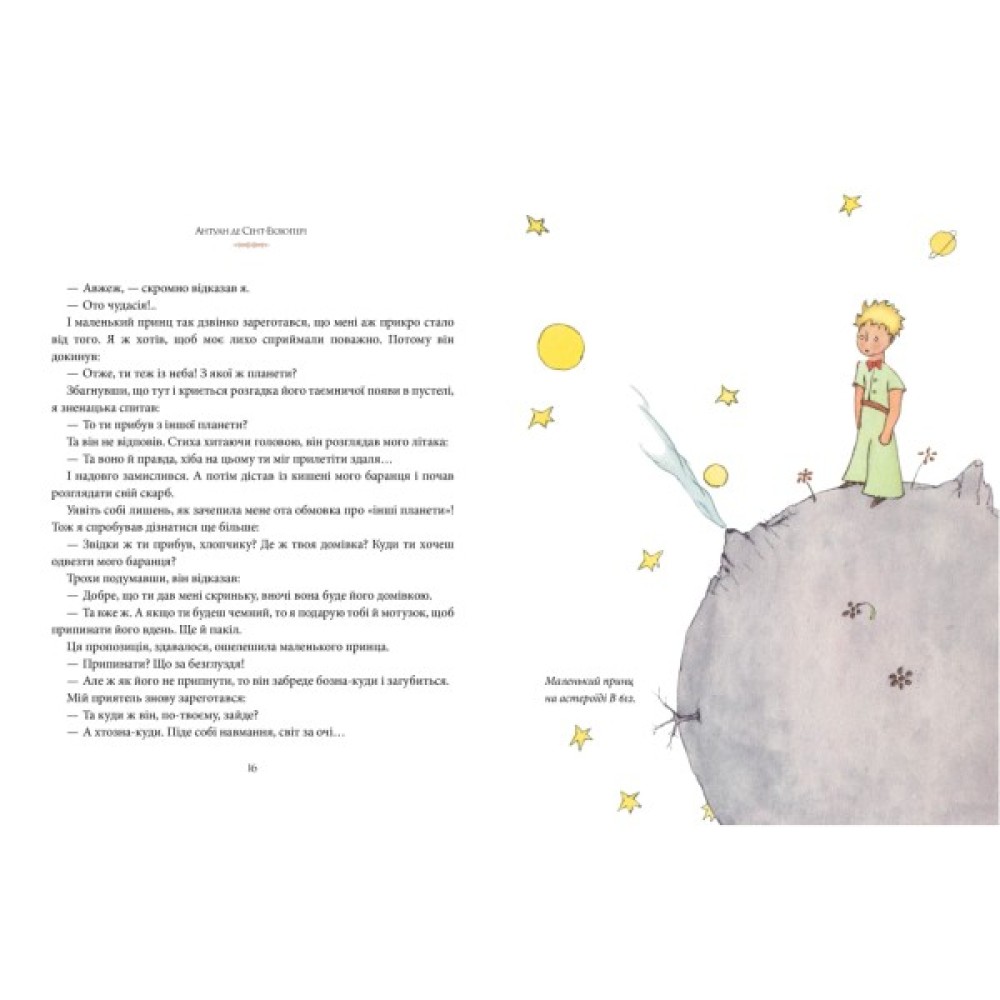 Ця книжка — справжній шедевр видатного французького письменника, поета й мислителя, пілота і вченого, конструктора й винахідника, людини-легенди Антуана де Сент-Екзюпері (1900–1944), якого один із його вчителів назвав «воістину універсальним талантом». Це захоплива лірична казка з цікавою фабулою для дітей і глибинним філософським змістом для дорослих, бо йдеться в ній про вічні категорії — добро і милосердя, чистоту і безпосередність, зачарований погляд на світ і любов до ближнього. «Добре бачить лише серце.