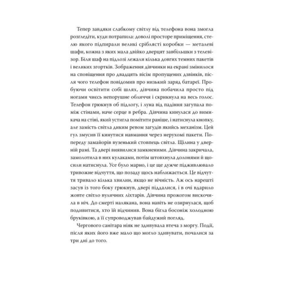 Санітар моргу, який бачить мертву серед живих. Письменник, який шукає на львівських вулицях героїнь для збочених сюжетів. Чоловік, який полює на вбивць своєї уявної доньки. Колишній судмедексперт, який втратив усіх, кого любив, але досі прагне зробити цей світ хоч трохи кращим. І дівчина, яка вже не прагне нічого.