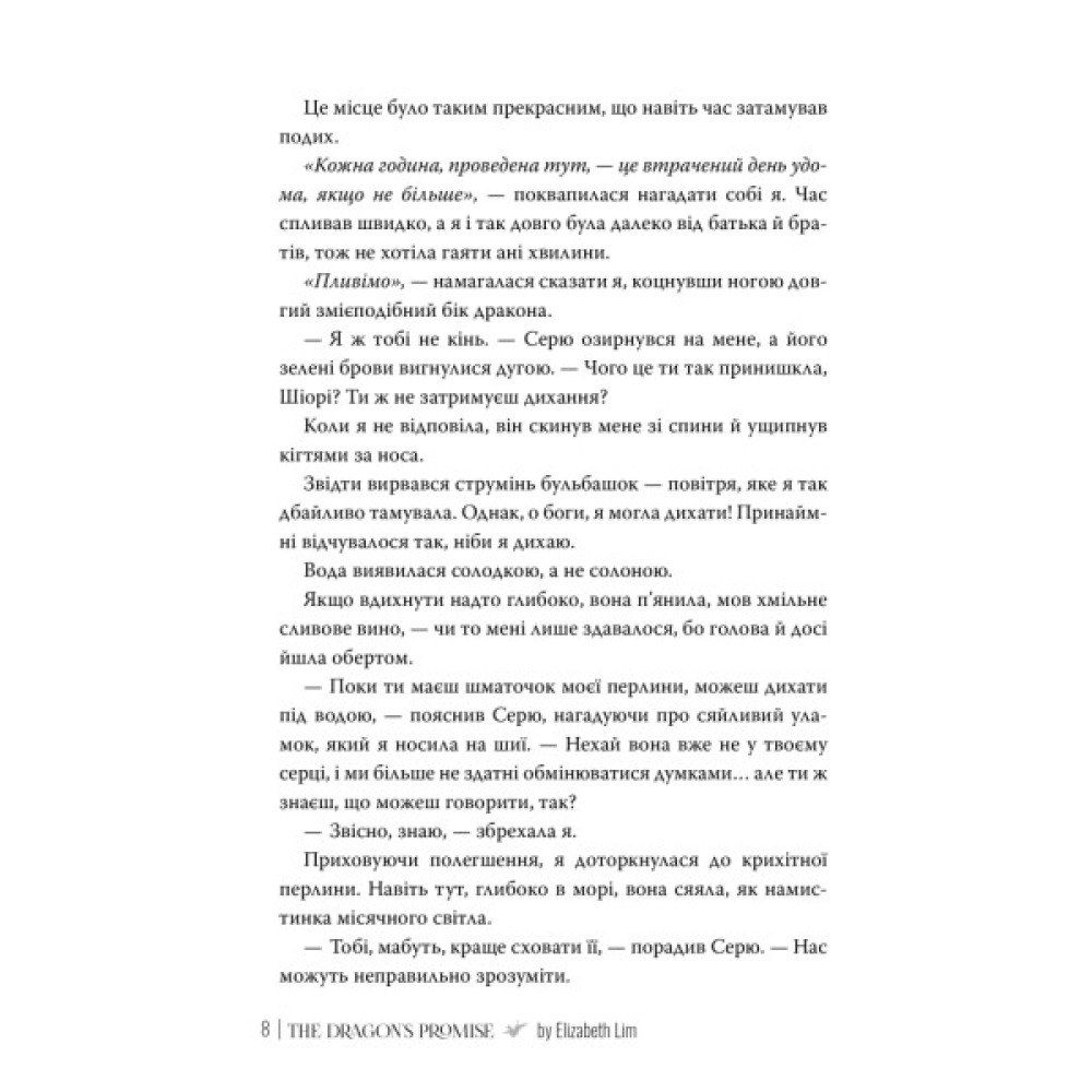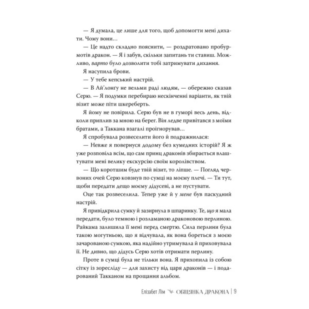 А на додачу драконова перлина виявляється незвичайною — у ній пульсують зловісні чари. Вона то допомагає Шіорі, то зраджує її, загрожуючи знищити сім’ю дівчини й розірвати нитку долі, що пов’язує принцесу зі справжнім коханням. Шіорі знадобиться вся її сила, щоби захистити власне життя, королівство й почуття, за які вона так важко боролася.