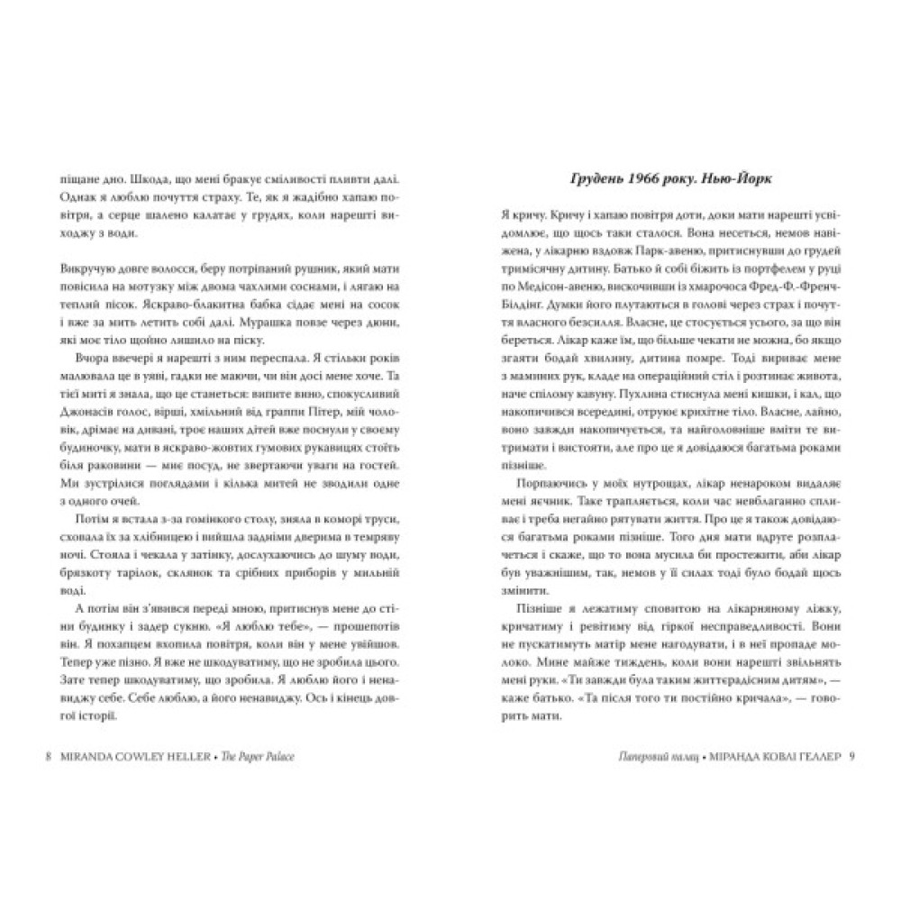 Погожого серпневого ранку Елеонора Бішоп купається у ставку неподалік Паперового палацу — сімейної літньої резиденції на Кейп-Коді. Пірнувши у воду, вона заново проживає пристрасну яскраву пригоду, що трапилася з нею напередодні ввечері, доки чоловік та мати безтурботно гомоніли з гостями.