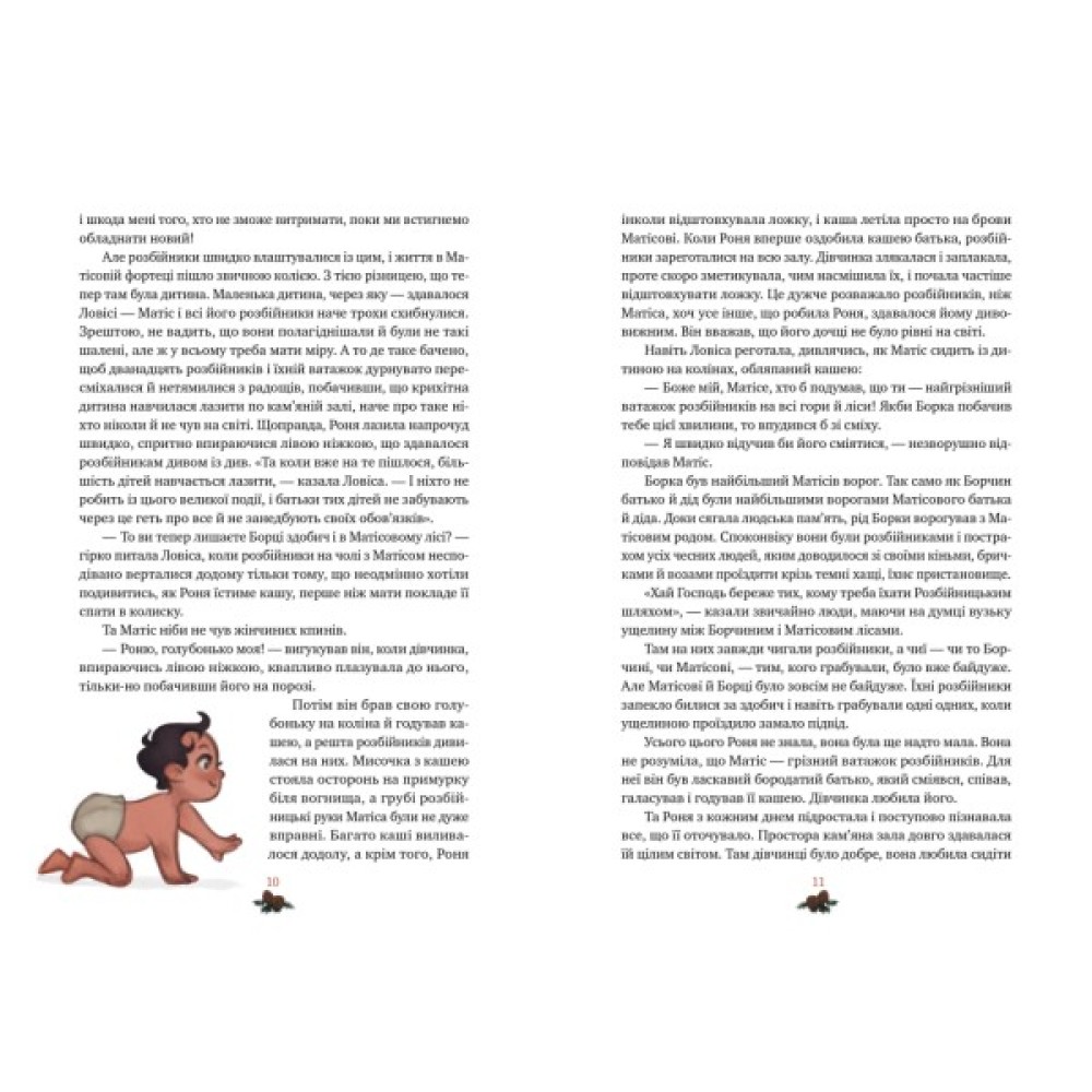 Видатна шведська письменниця, лауреатка премії ім. Г. Х. Андерсена, розповідає про хлопчика і дівчинку, батьки яких ворогують між собою. Роня живе в лісі разом із розбійницькою ватагою свого батька Матіса.