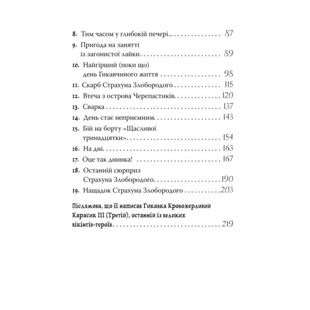 Небезпечна це робота — бути вікінгом. Адже справжній вікінг має не лише приборкати дракона, а й опанувати ремесло пірата. Серед патлатих розбишак було чимало відважних піратів, а найзнаменитіший — Страхун Злобородий, прапрадід Гикавки Кровожерливого Карасика ІІІ (Третього). А тепер уявіть, що ви натрапили на слід незліченних скарбів Страхуна Злобородого. Хіба застереження «НЕ ВІДКРИВАТИ!» вас зупинить?! Проте Гикавка впевнений: якщо порушити заборону, станеться лихо. Та в племені ніхто його не почув. Тож патлаті розбишаки знову вскочили в халепу, а рятувати всіх (і себе!) довелося, як завжди, Гикавці.