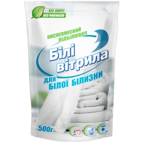 Відбілювач кисневмісний для білих тканин призначений для виведення плям і антимікробної обробки виробів із бавовняних, лляних. синтетичних тканин як при ручному, так і при машинному пранні. Виводить плями, що складно усунути (чай, кава, вино, кров, ягоди, фрукти та ін.). Зберігає та освіжає яскравість білої білизни. Не пошкоджує структуру тканин. Посилює дію прального порошку, покращує якість прання