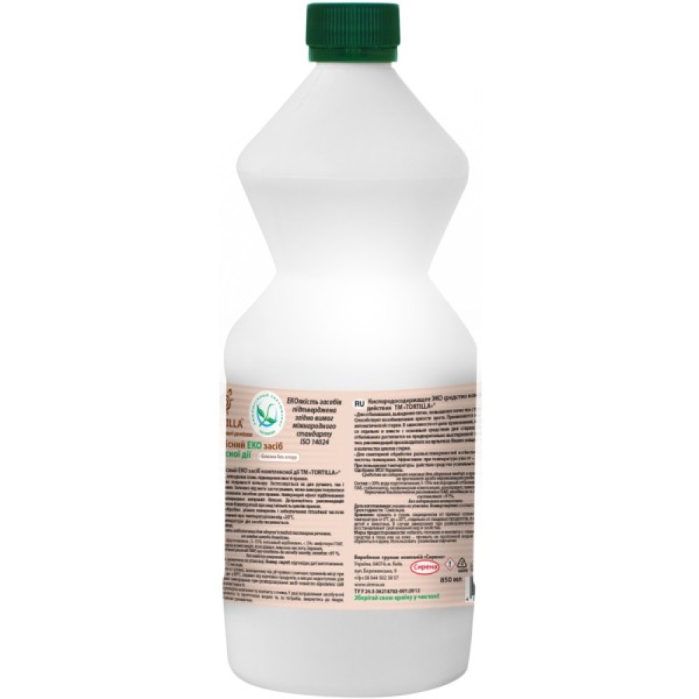 Кисневмісний ЕКО засіб комплексної дії (Білизна без хлору) "Тортила" — засіб для вибілювання, виведення плям, санітарного оброблення тканин і поверхонь. Має антибактеріальну дію.