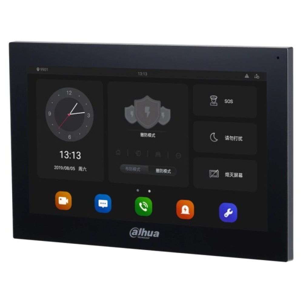 Dahua DHI-VTH5341G-W – це 10-дюймовий сенсорний IP-відеодомофон на Android 8.1, який можна підключити до локальної мережі через Ethernet і Wi-Fi. Стильний і лаконічний дизайн дозволяє легко впроваджувати пристрій в будь-який інтер'єр. Домофон працює на базі вбудованого процесора з ОС Android 8.1, підтримує мережеві протоколи IPv4, TCP, SIP, UDP, RTSP. 10-дюймовий TFT LCD дисплей з роздільною здатністю 1024x600 пікселів має вбудовану сенсорну клавіатуру від 0 до 9, * і #. Пристрій оснащений всеспрямованим мікрофоном і динаміком, які забезпечують двостороннє спілкування з відвідувачем. Записані фото і відео можна зберегти на картці пам'яті Micro SD, об'ємом до 256 Гб (купується окремо). Для підключення до мережі можна використовувати мережевий інтерфейс RJ45 (10M/100M Ethernet) або Wi-Fi (IEEE802.11b/802.11g/802.11n, 2.4 ГГц), які дозволяють в будь-який час дистанційно контролювати ситуацію: відчиняти двері, переглядати повідомлення та фото, спілкуватися з гостями. Домофон DHI-VTH5341G-W має 8 тривожних входів і 1 тривожний вихід для підключення датчиків і сенсорів, також можна підключити дверний дзвінок. Є інтерфейс RS-485. Живлення здійснюється від джерела DC 12 В або за технологіїєю POE (802.3AF). Споживання в робочому режимі ≤7 Вт, в режимі очікування ≤1.5 Вт.