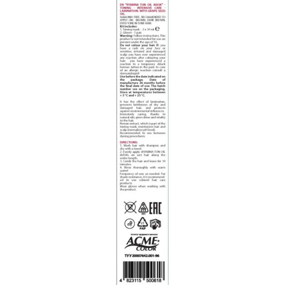 Тонуюча маска для волосся ACME-COLOR Hair Care TON oil mask має в асортименті 24 відтінки, розділених на 4 основні групи: для світлих відтінків, для натуральних відтінків, для темних відтінків, для червоно-фіолетових відтінків.