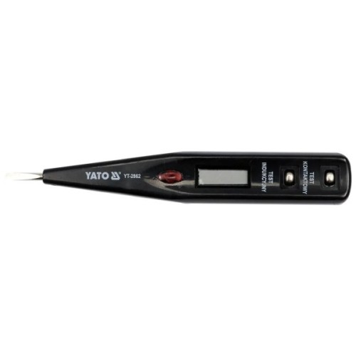 Індикатор YATO LCD 12-250 V YT-2862 призначений для електричних монтажників та електропослуг. Вимірник забезпечує індикацію напруги змінного струму в діапазоні 12-220 V, даючи свої номінальні значення та виявлення 220 напруги у дротах. Індикатор має наконечник сталі (3 мм плоским наконечником), корпус із дисплеєм напруги.